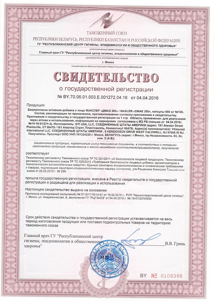 Документы Макслер ДМАЭ 250 / Maxler DMAE 250 капсулы по 650 мг 100 шт 100 шт
