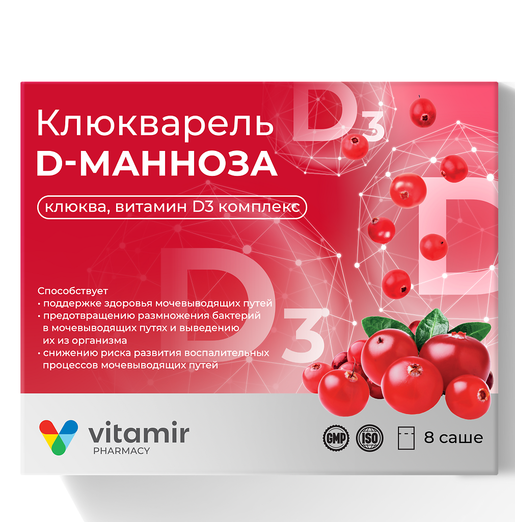 • 🏪 Купить Витамир Клюкварель Д-манноза, клюква, витамин Д3 комплекс порошок в саше-пакетах по 5 г 8 шт можно на сайте и в наших аптеках в Тынде