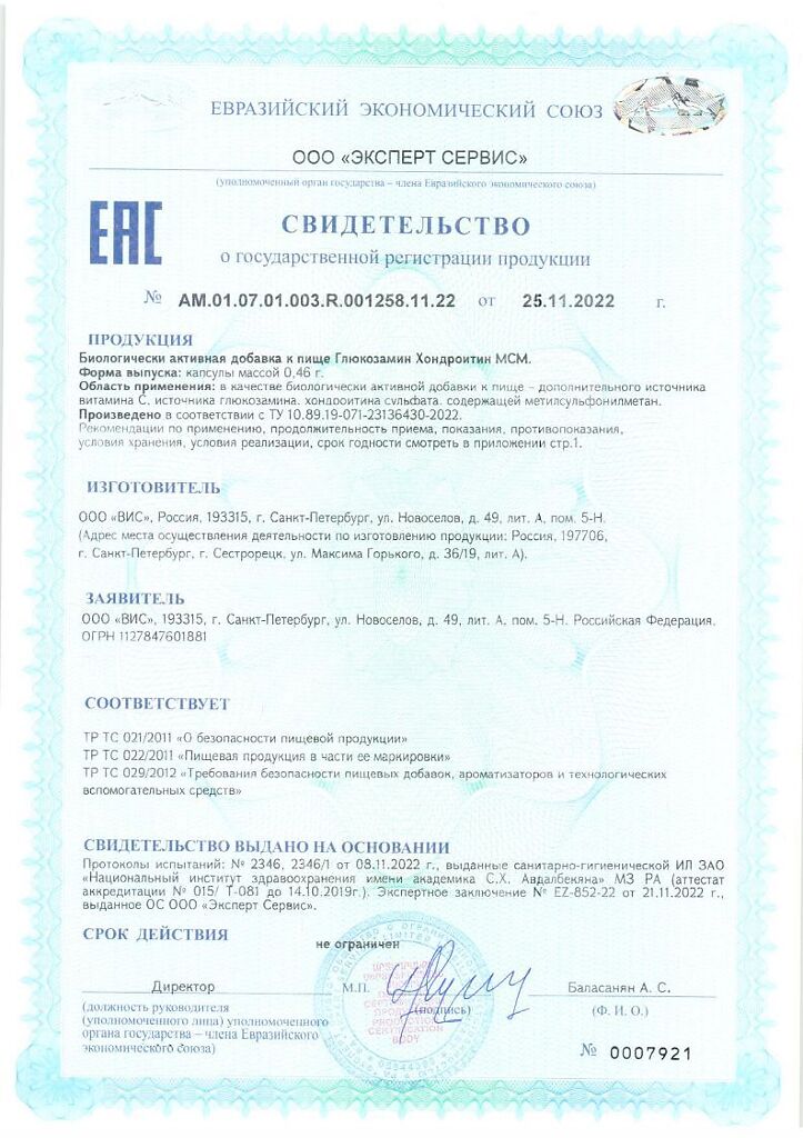 Документы Артроцин Глюкозамин Хондроитин МСМ капсулы массой 0,46 г 60 шт