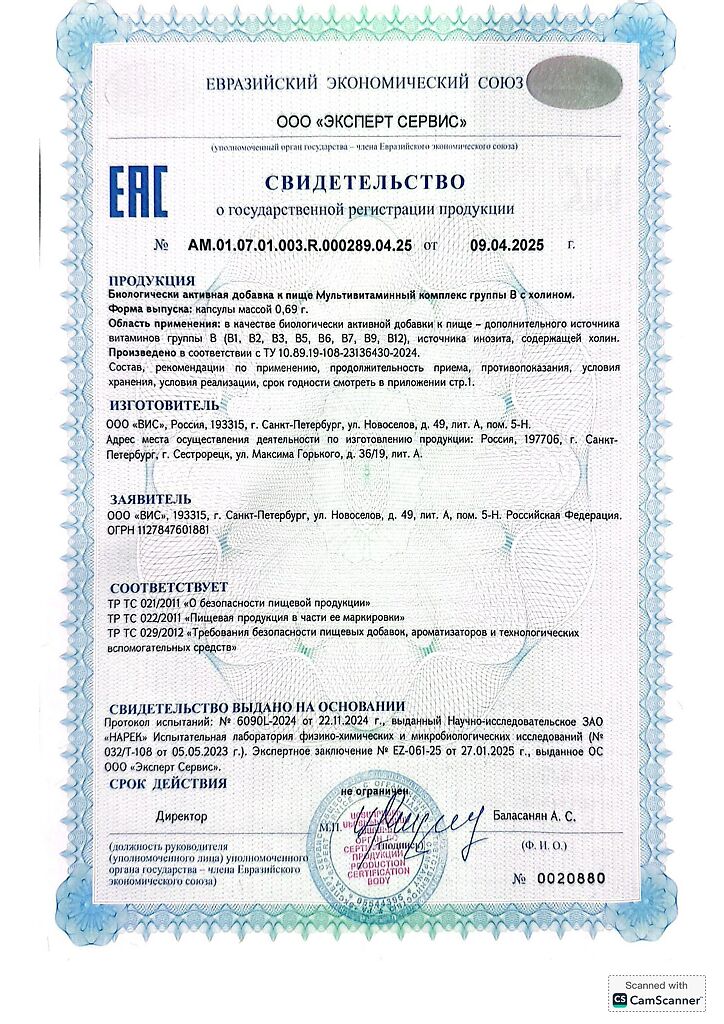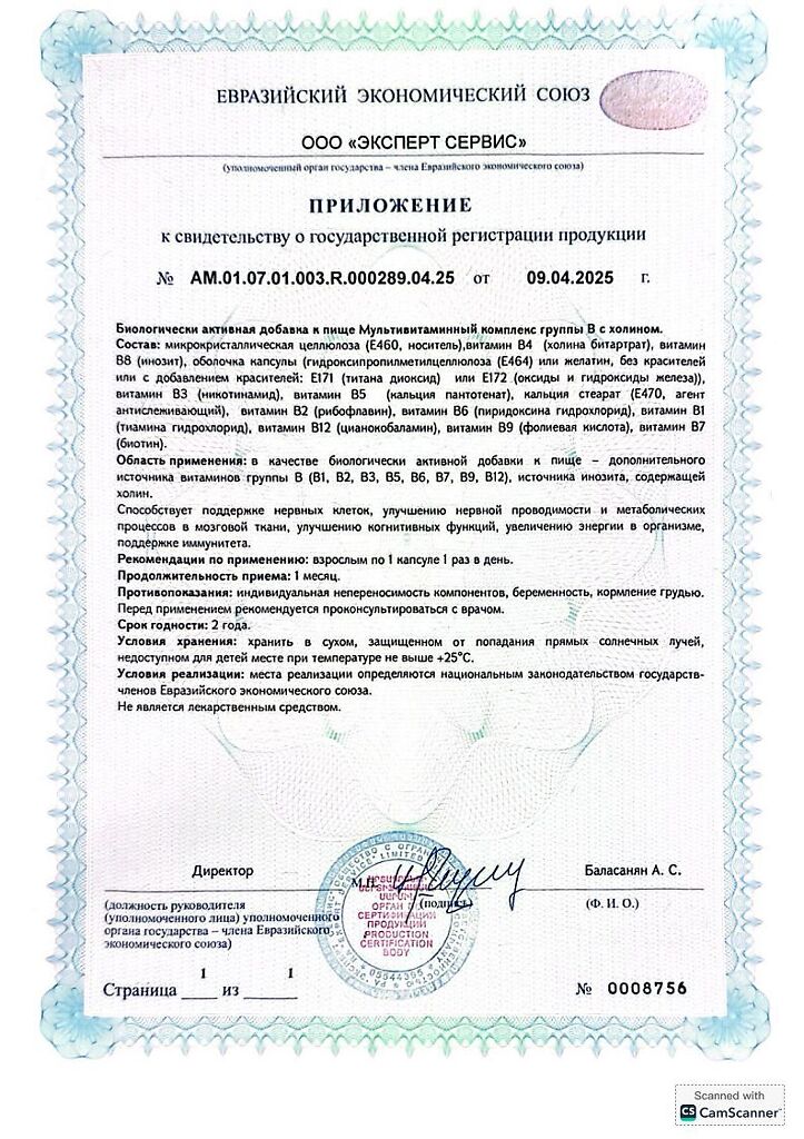 Документы Благомакс Мультивитаминный комплекс группы В с холином капсулы массой 0,69 г 30 шт