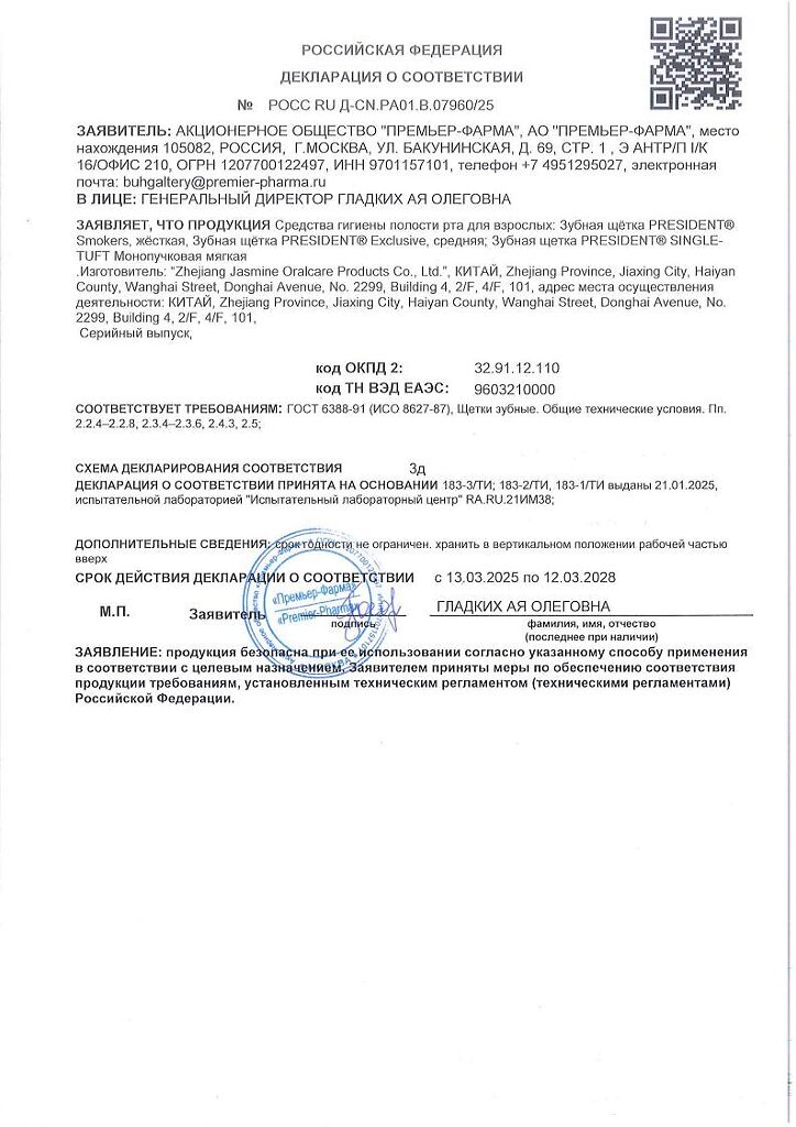 Производитель: Zhejiang Jasmine Oralcare Products Co., Ltd, Китайская Народная Республика