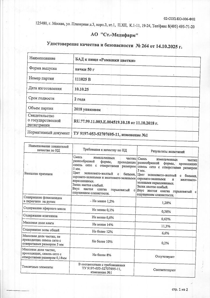 Документы Love Botanica Ромашки цветки пачка по 50 г 1 шт