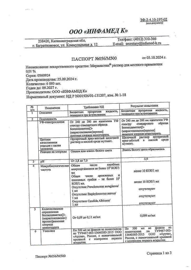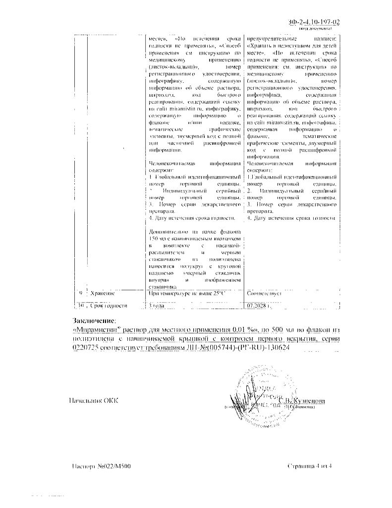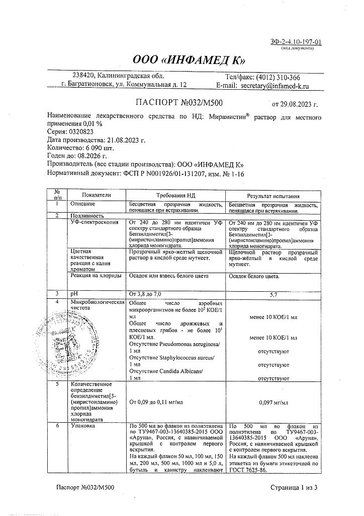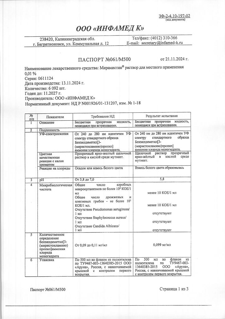 Действующее вещество: Бензилдиметил 3-(миристоиламино) пропиламмоний хлорид моногидрат