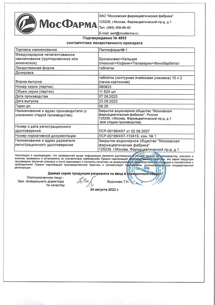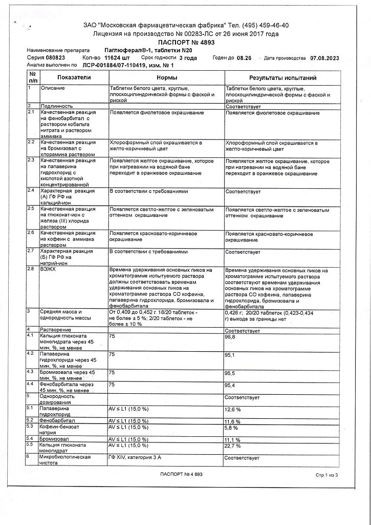 Паглюферал®-1 назначают детям в возрасте 3-4 года - по 1 таб. 2 раза/сут; детям в возрасте 5-6 лет - по 1.5 таб. 2 раза/сут; детям в возрасте 7-9 лет - по 2 таб. 2 раза/сут; детям в возрасте 10-14 лет - по 3 таб. 2 раза/сут; детям с 14 лет и взрослым - по 4 таб. 2 раза/сут.