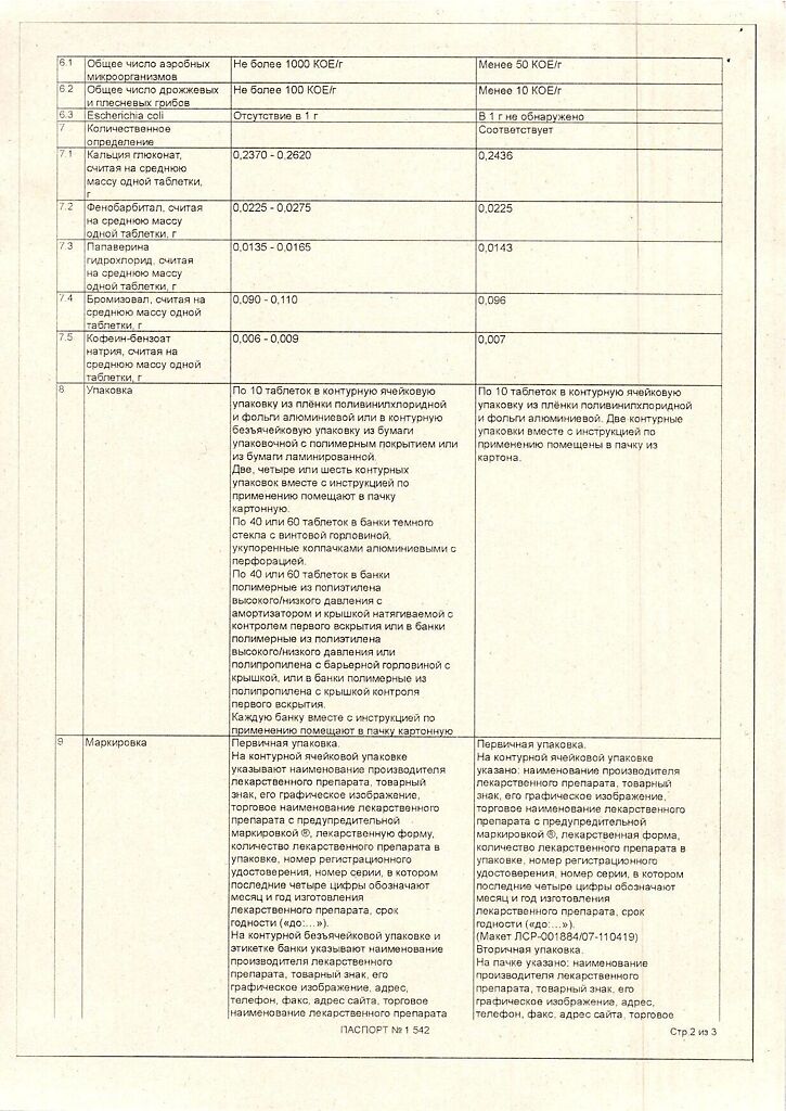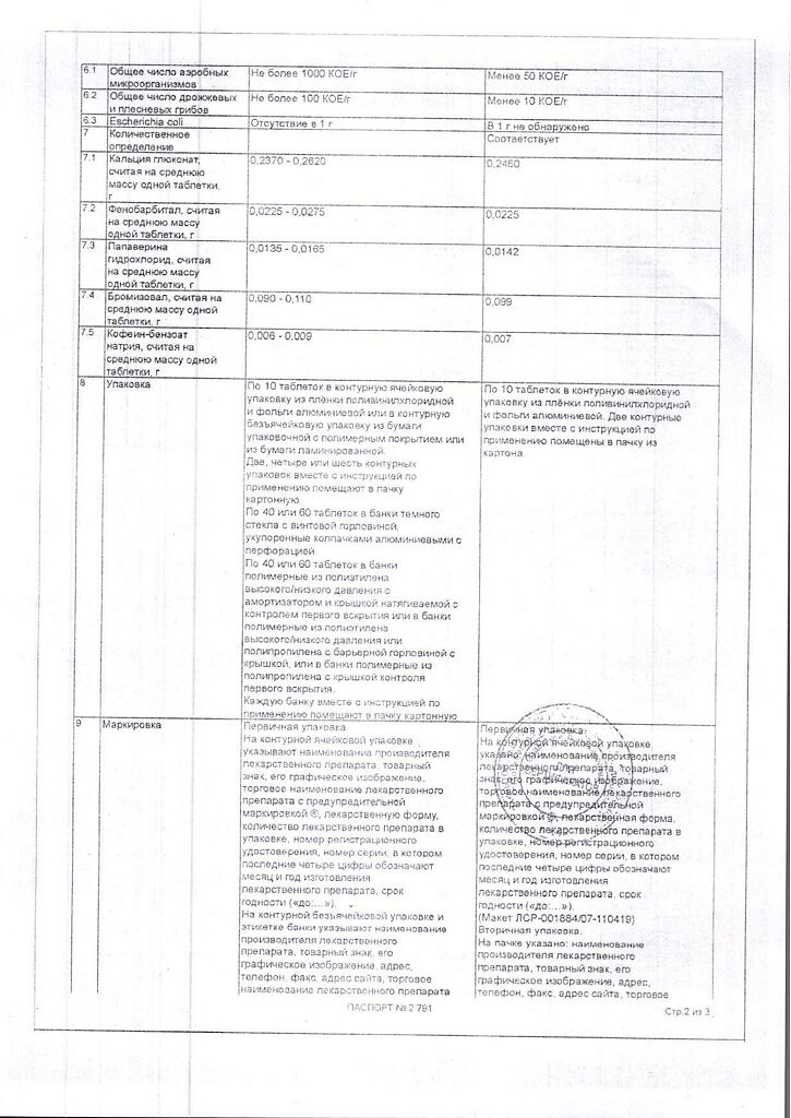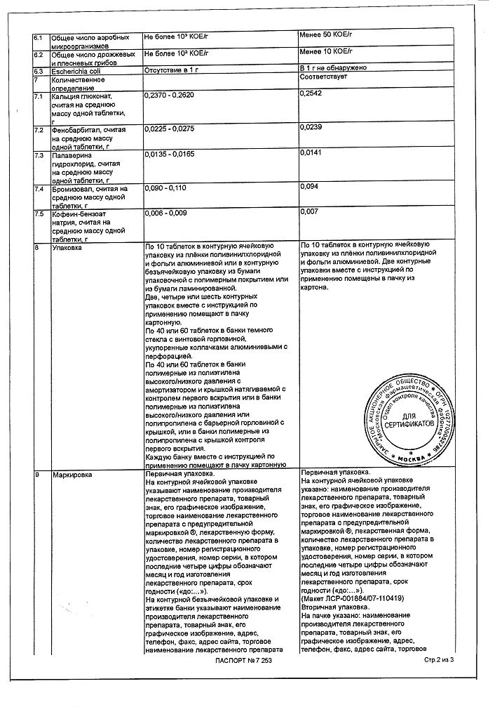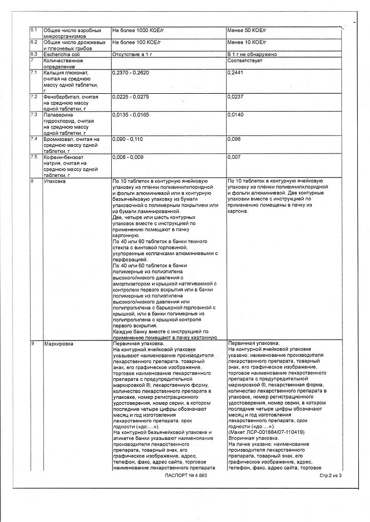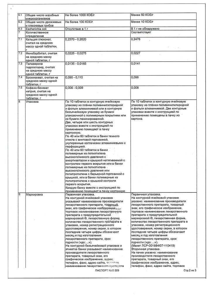 Действующее вещество: Бромизовал, Кальция глюконат, Кофеин, Папаверин, Фенобарбитал