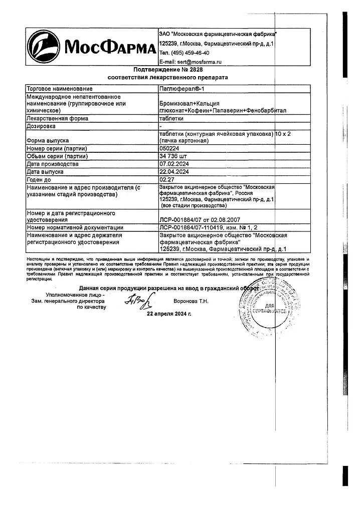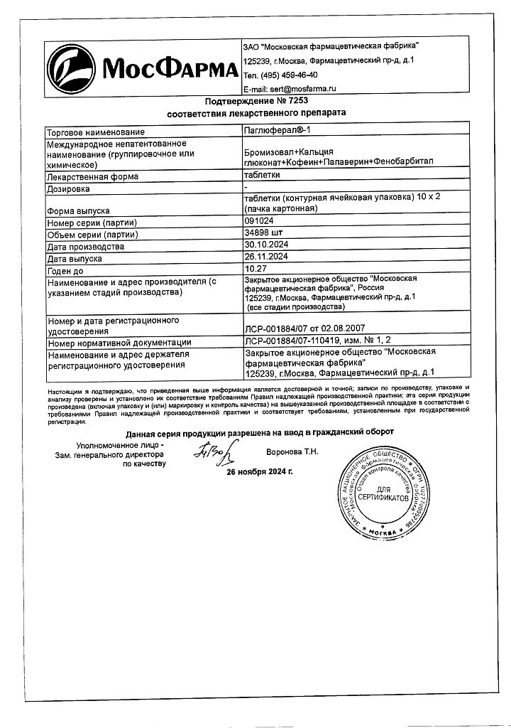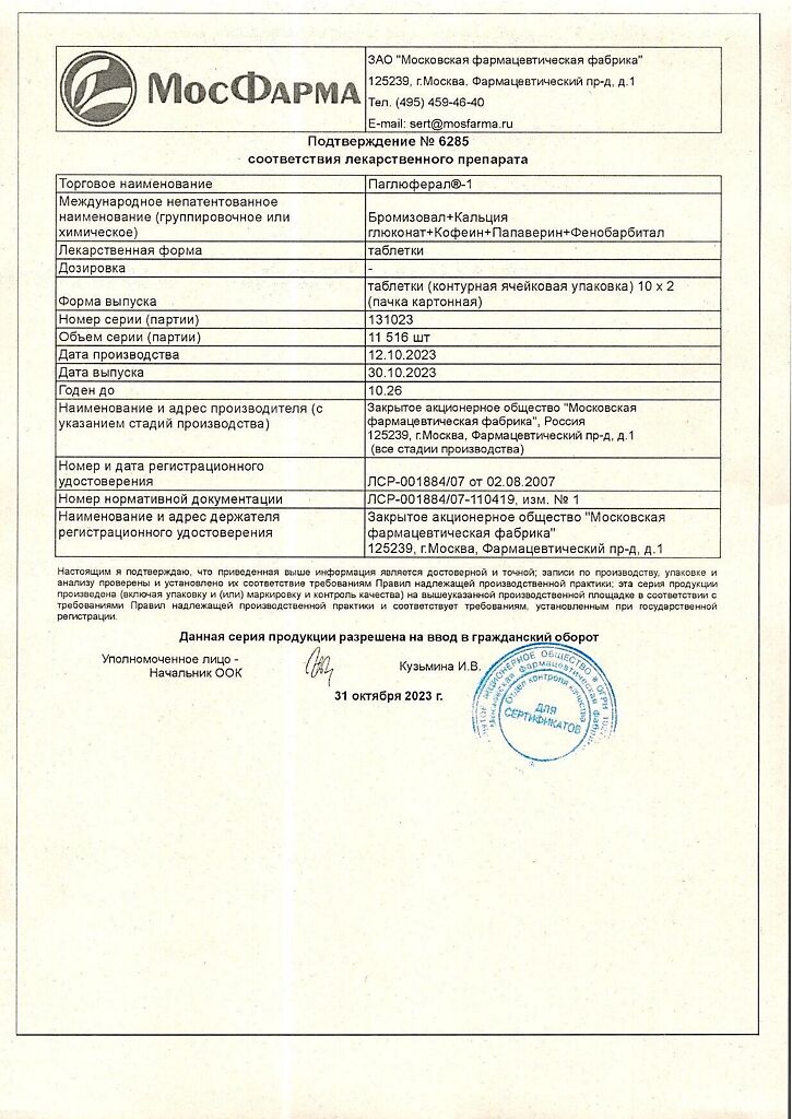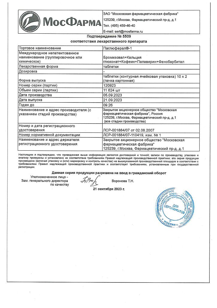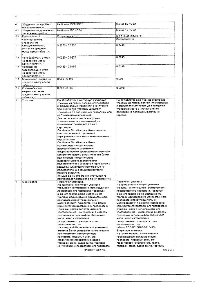 Действующее вещество: Бромизовал, Кальция глюконат, Кофеин, Папаверин, Фенобарбитал