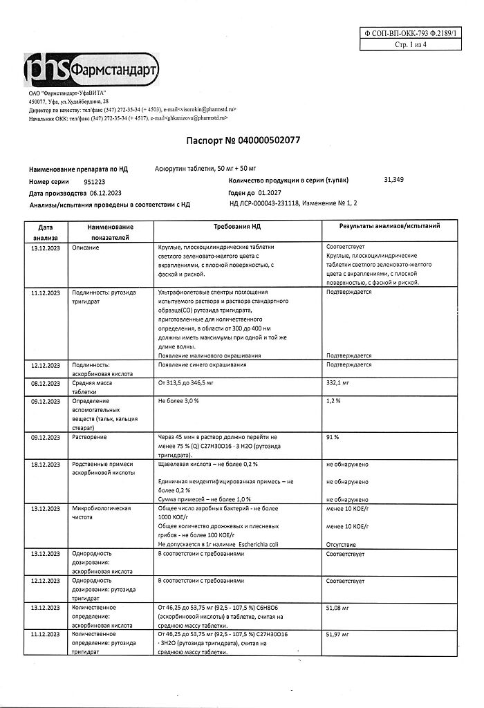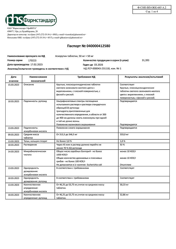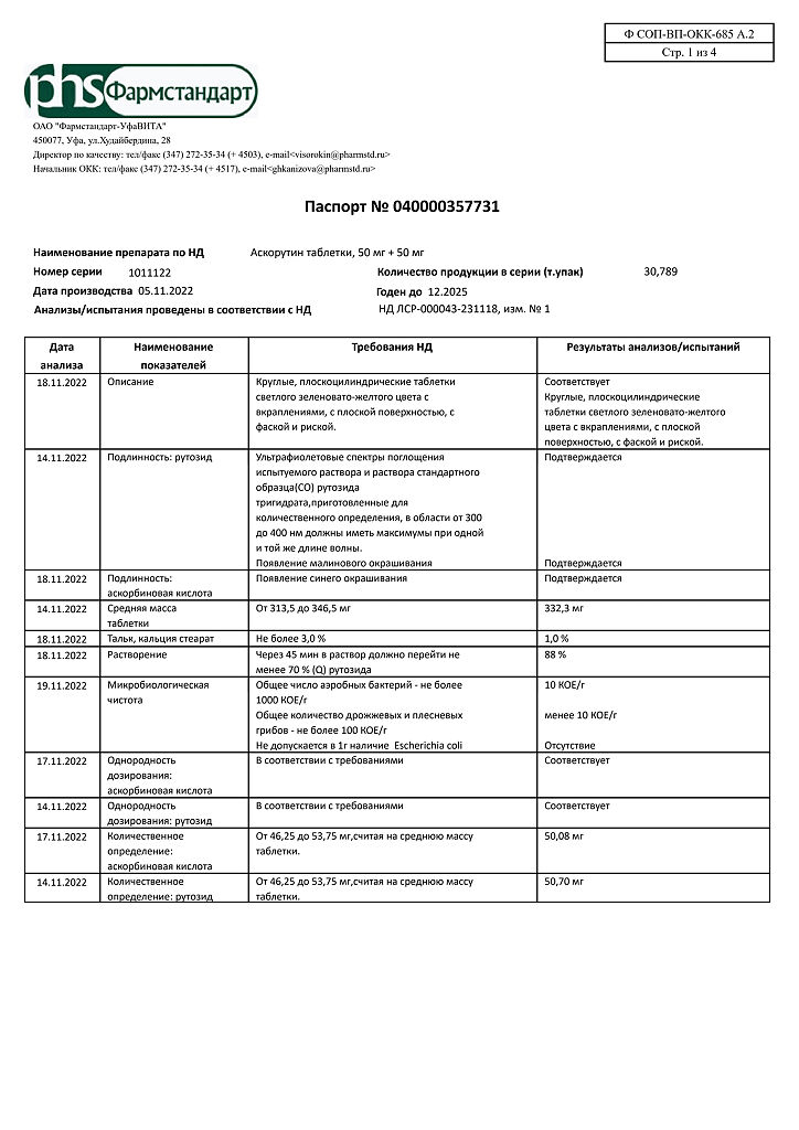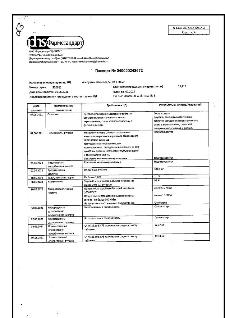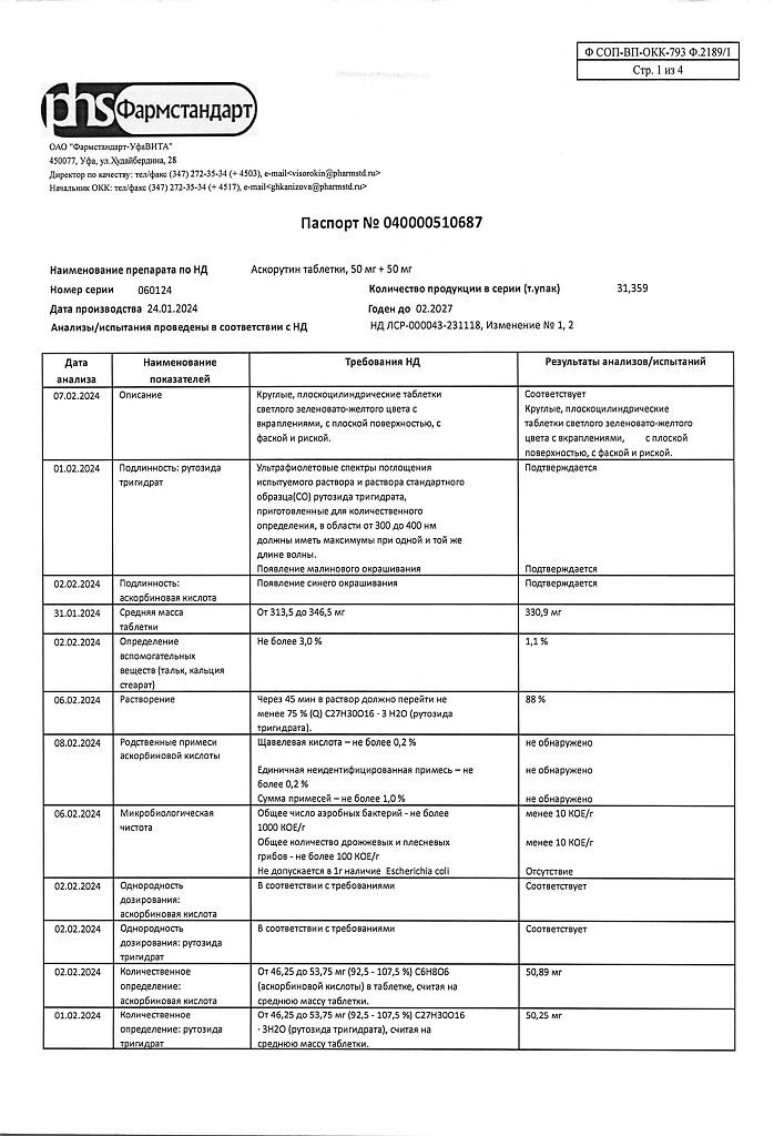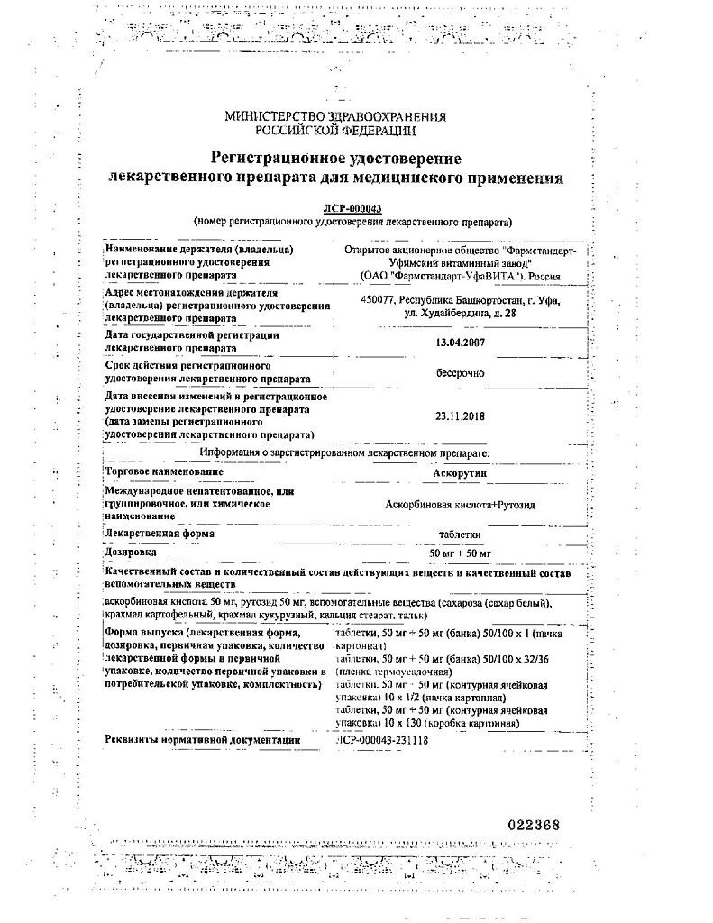 Действующее вещество: Аскорбиновая кислота, Рутозид