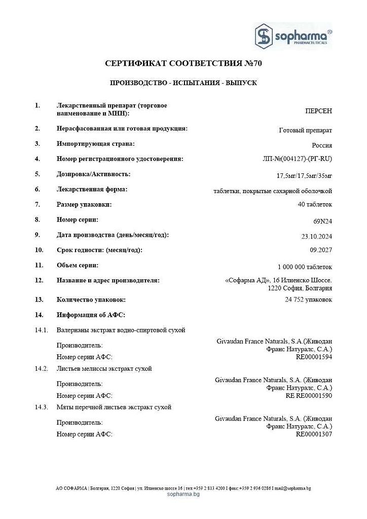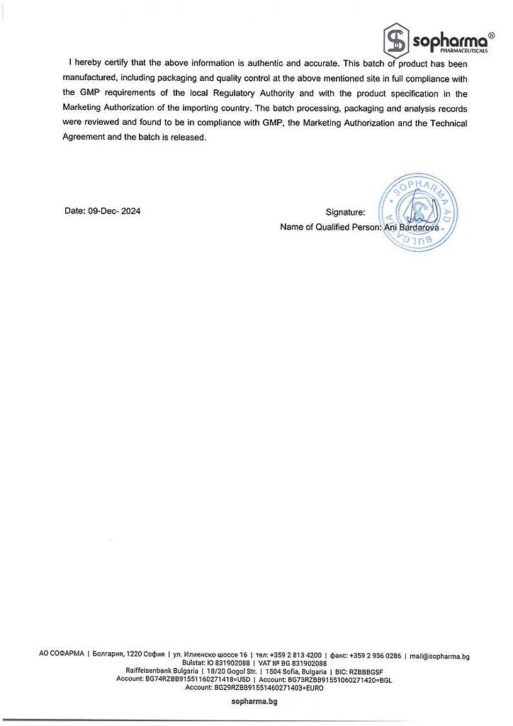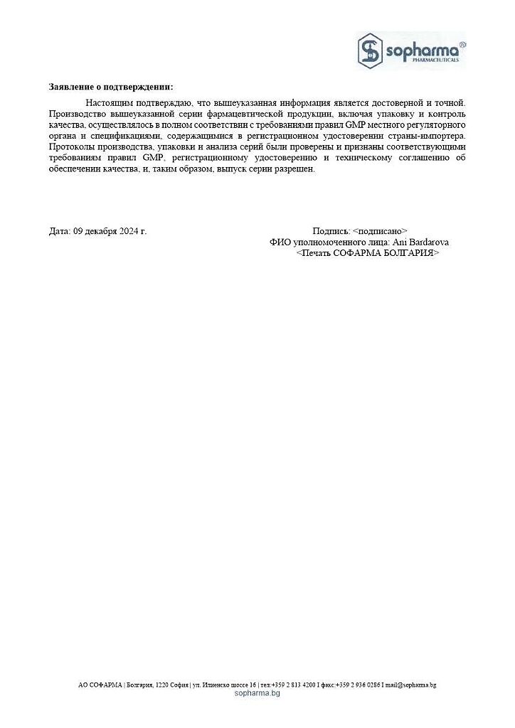 Производитель: Софарма АО, Болгария