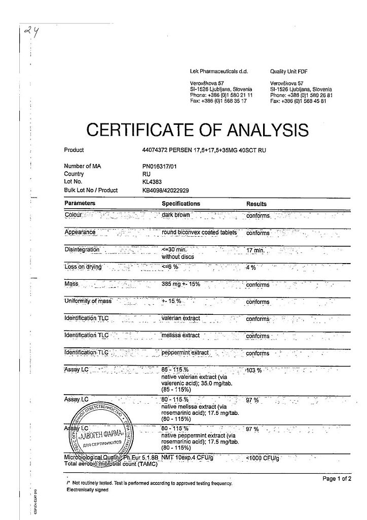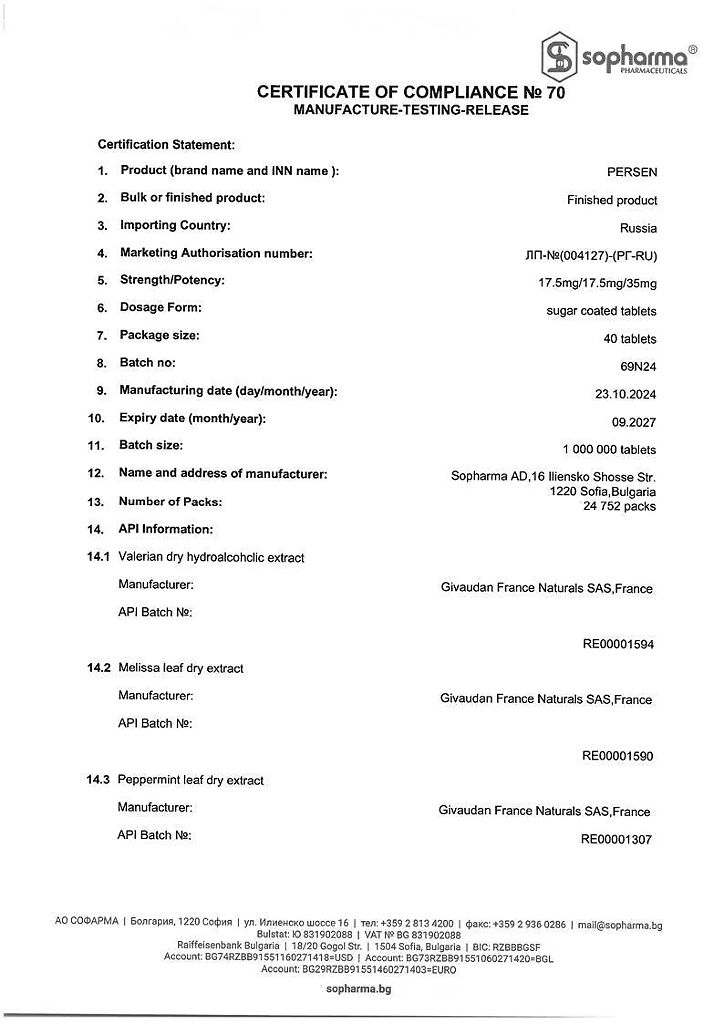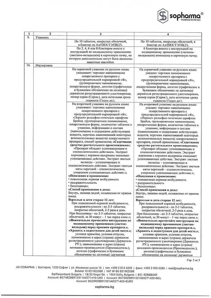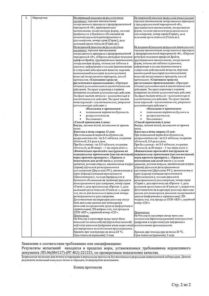 Действующее вещество: Валерианы корня экстр., Мелиссы лек. травы экстр., Мяты листьев экстр.