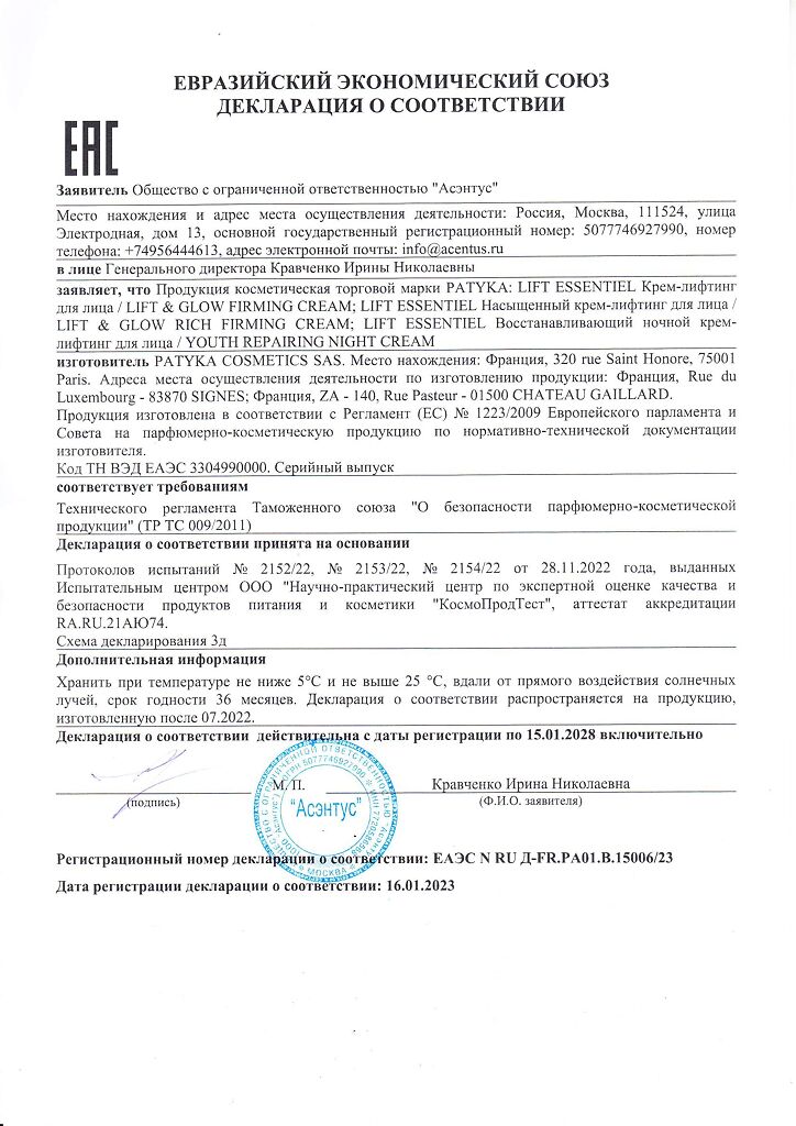 • 📒 Подробная инструкция по применению Patyka Крем для лица