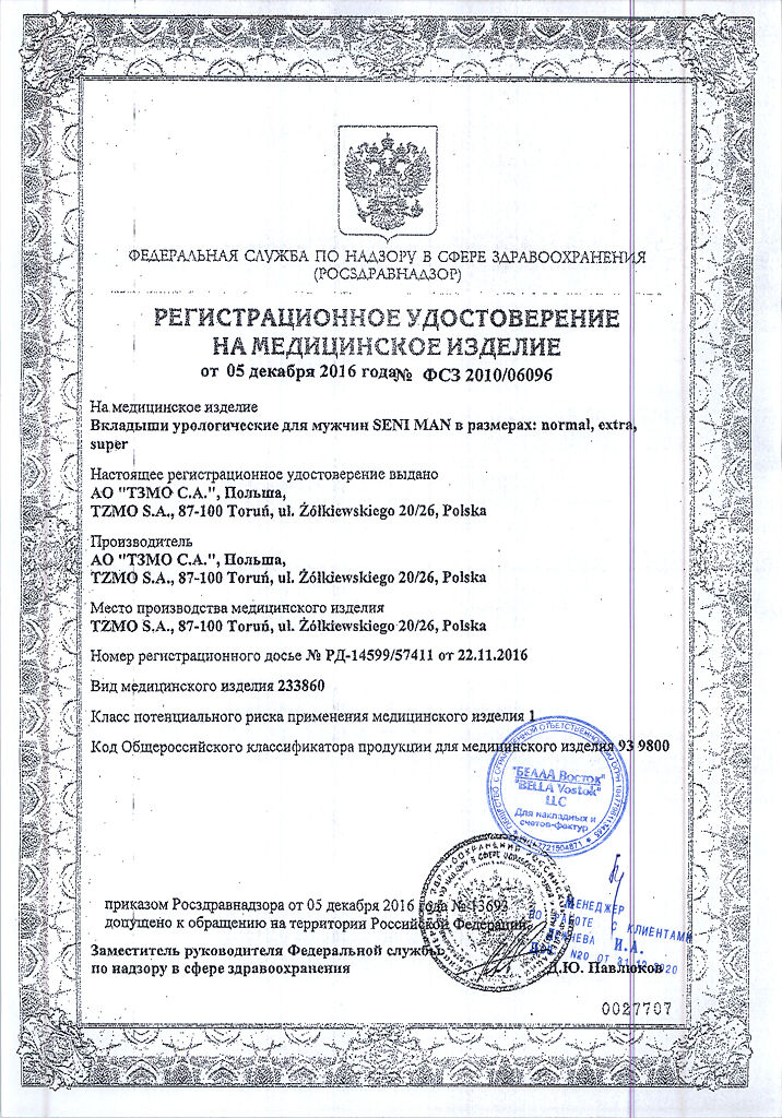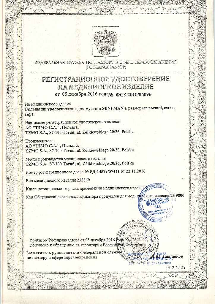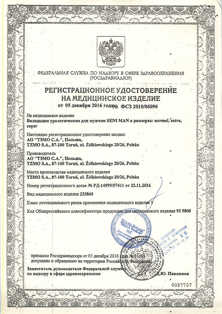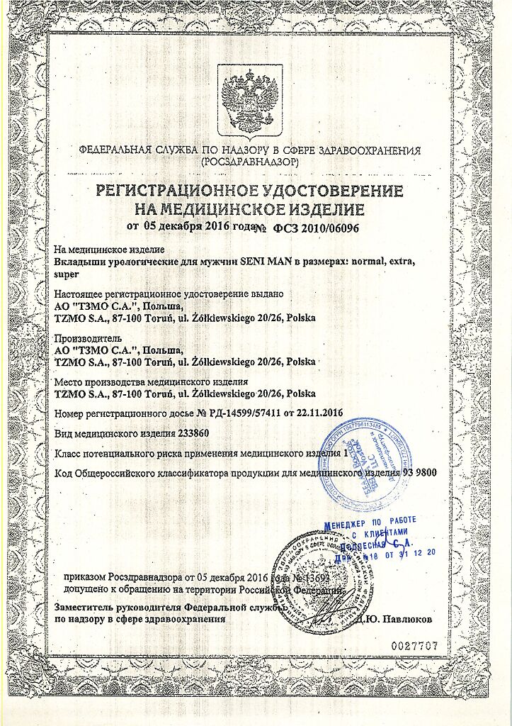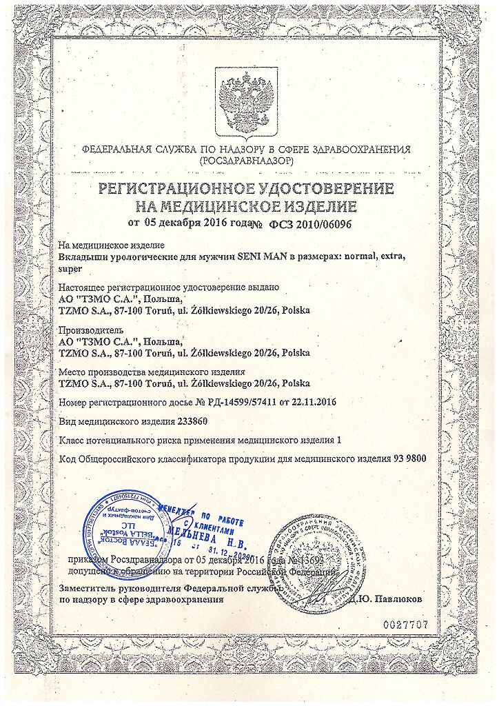 Документы Прокладки урологические СЕНИ МЕН Нормал