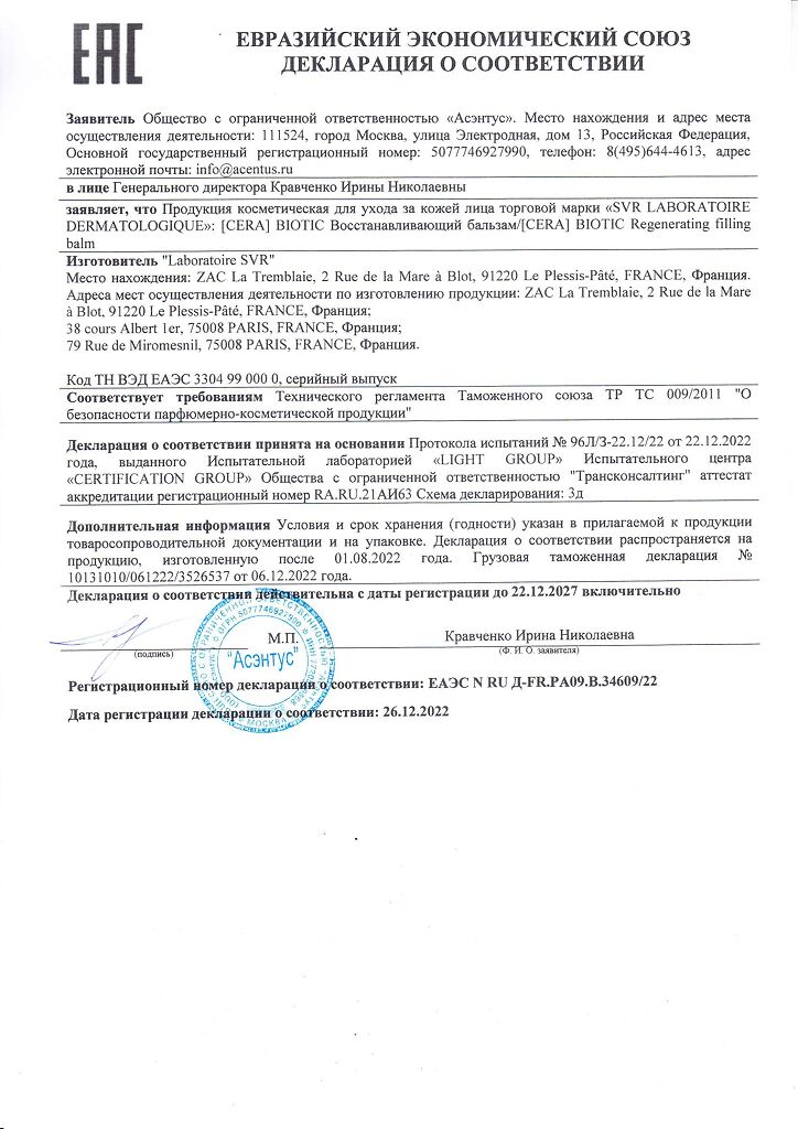 Документы SVR бальзам для лица