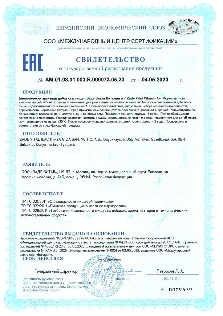 Заде Витал/Zade Vital Витамин А инструкция по применению