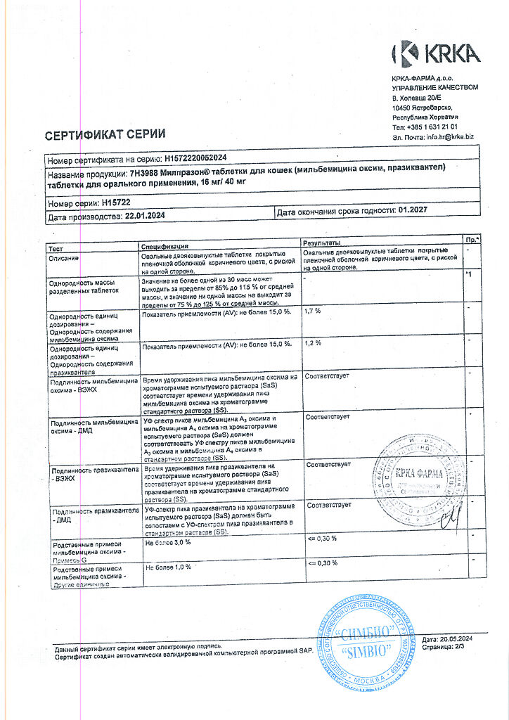 Действующее вещество: Мильбемицина оксим, празиквантел