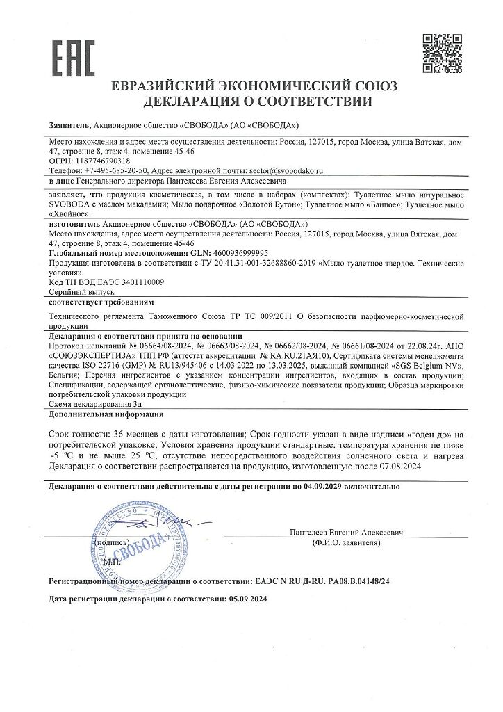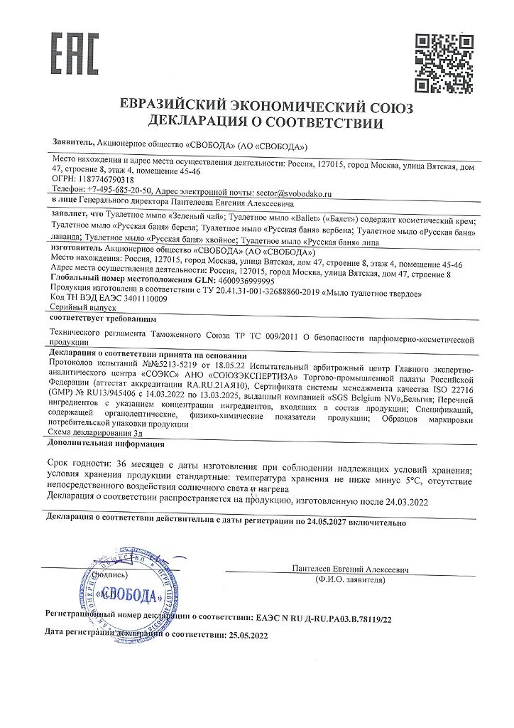 Туалетное мыло «Свобода» вырабатывается из натуральных масел и жиров.