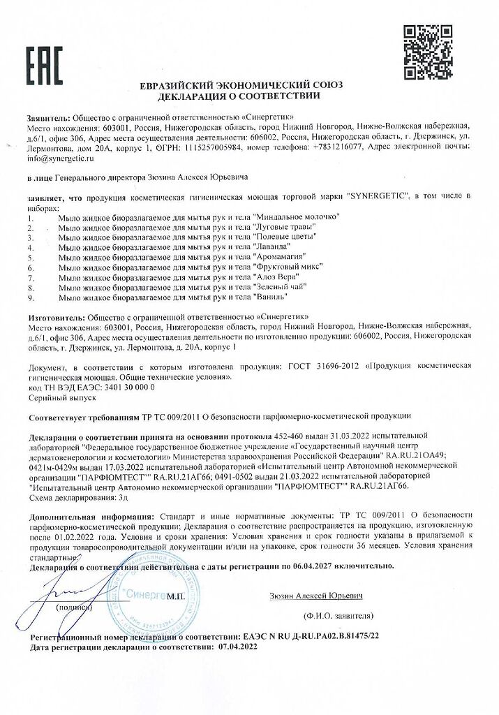 • 📒 Подробная инструкция по применению Synergetic Жидкое мыло