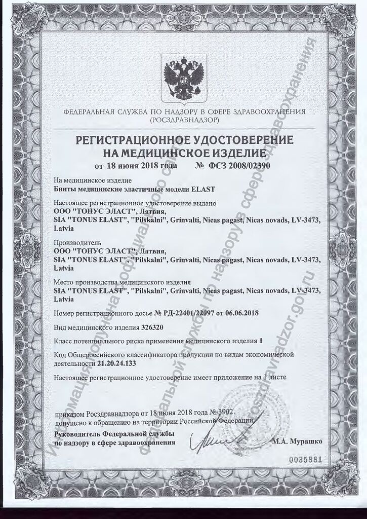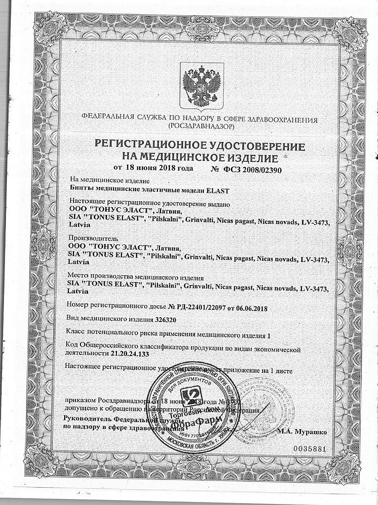 Производитель: Тонус Эласт, Латвия
