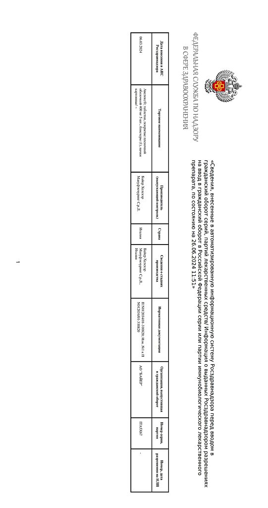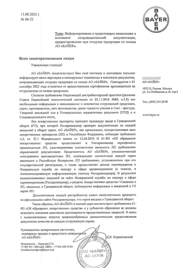 Производитель: Байер Хелскэр Мануфэкчуринг С.р.Л, Италия