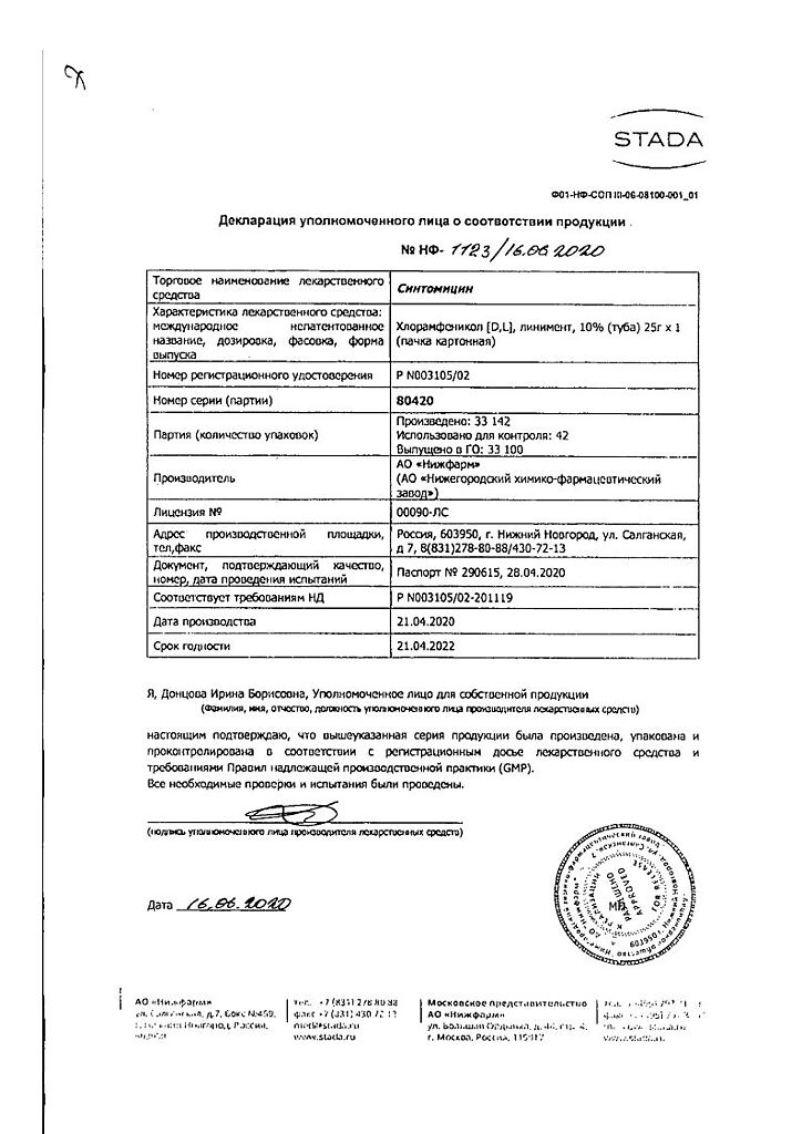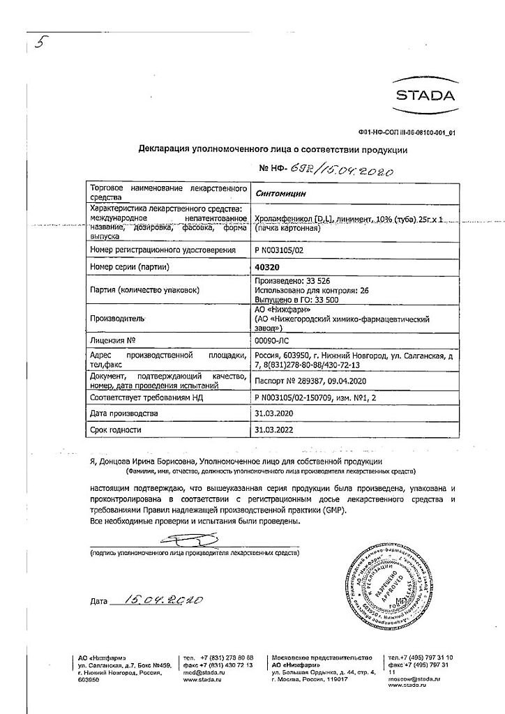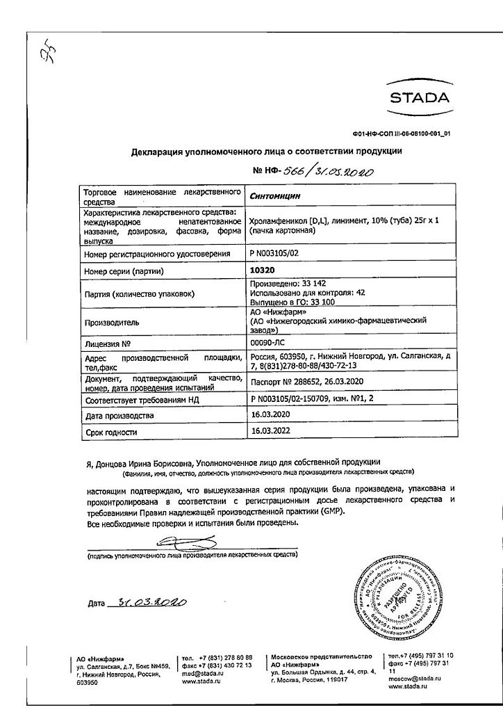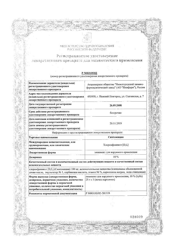 • Информацию об акциях и скидках на Синтомицин уточняйте на нашем сайте.