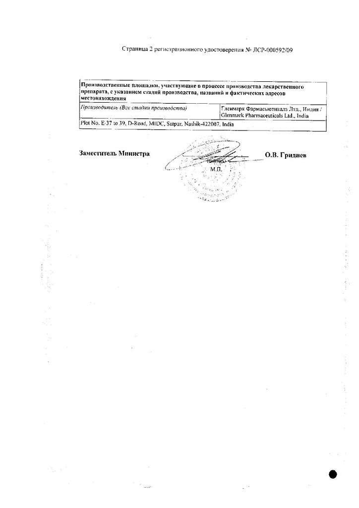 Производитель: Гленмарк Фармасьютикалз Лтд, Индия
