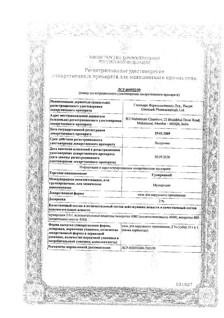 Как и при использовании других антибактериальных препаратов, длительное назначение мази Супироцин может привести к чрезмерному росту нечувствительных микроорганизмов.