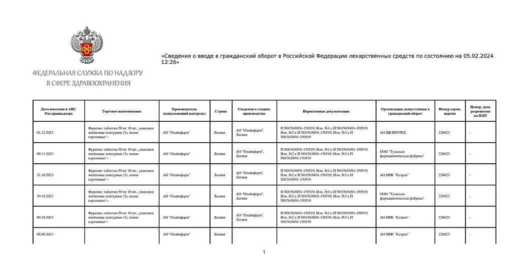Страница носит информационный характер о наличии препаратов. Перед назначением и применением проконсультируйтесь с врачом