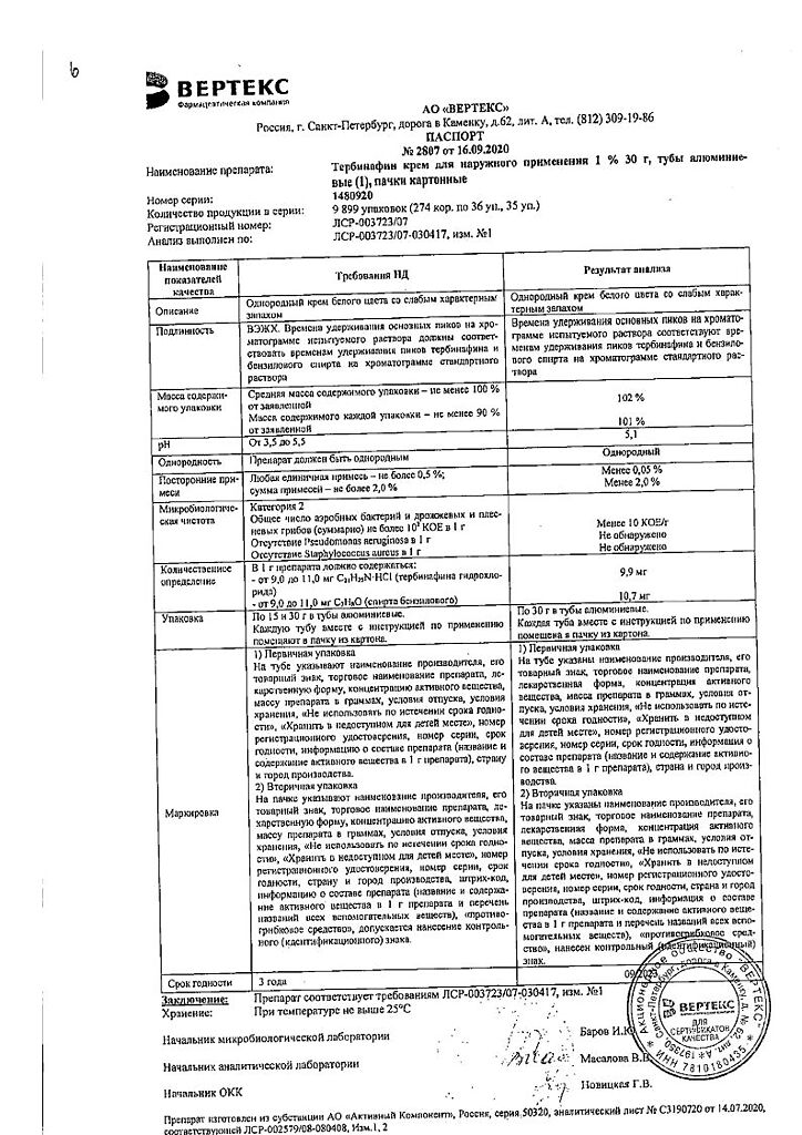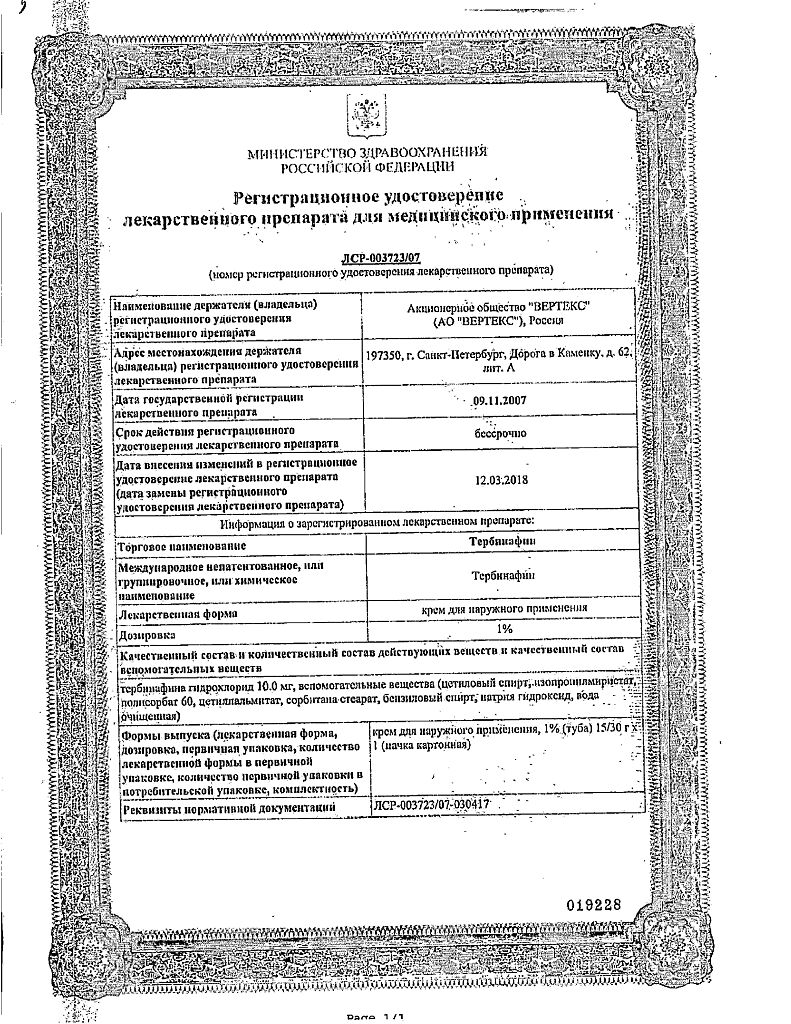 Тербинафин относится к группе аллиламинов, обладает широким спектром противогрибкового действия. В низких концентрациях оказывает фунгицидное действиe на дерматофиты Trychophyton (Т. rubrum,