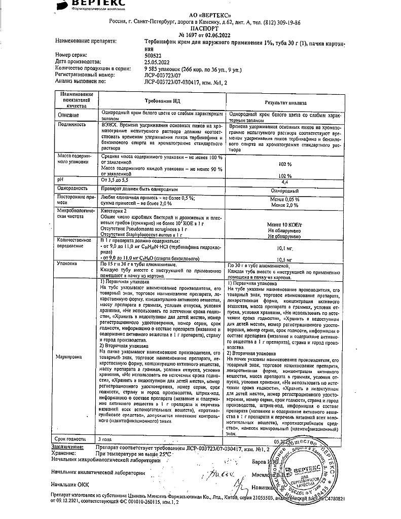 действуюшие вещества: тербинафина гидрохлорид 10 мг;