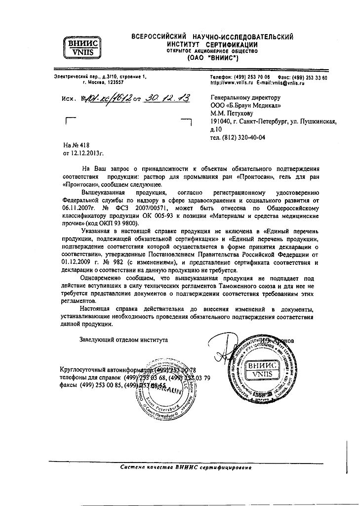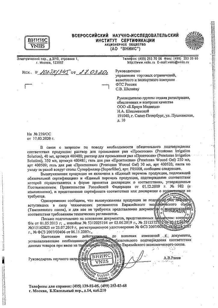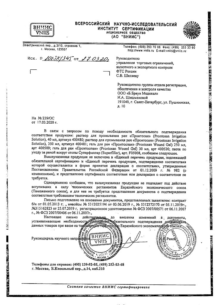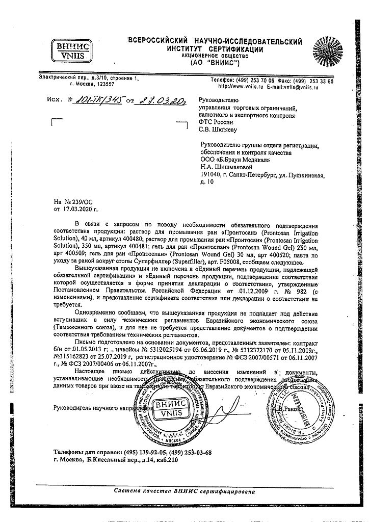 Для промывания больших раневых поверхностей, а также ран в труднодоступных местах рекомендуется обработка всего пораженного органа или части тела раствором Пронтосан в течение не менее 15 минут.