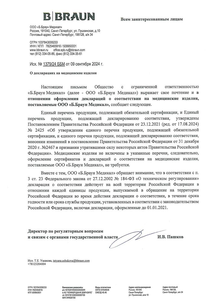 Производитель: Б.Браун Мельзунген АГ, Швейцария