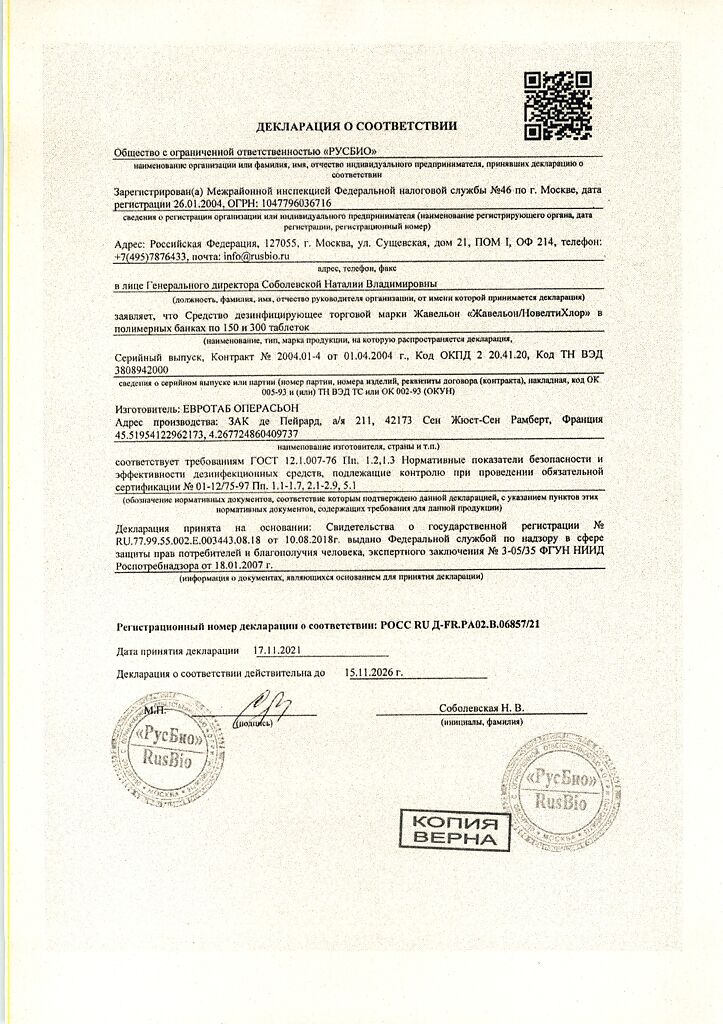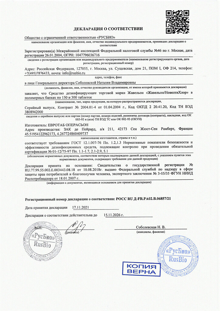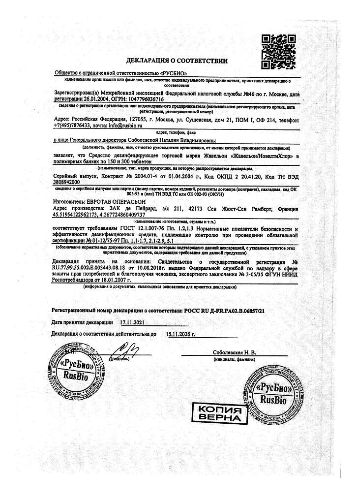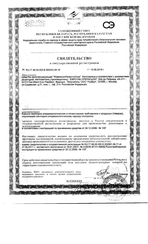 Жавелион обладает бактерицидным (в том числе туберкулоцидным), вирулицидным (в том числе в отношении возбудителей гепатитов и ВИЧ инфекции) и фунгицидным действием.