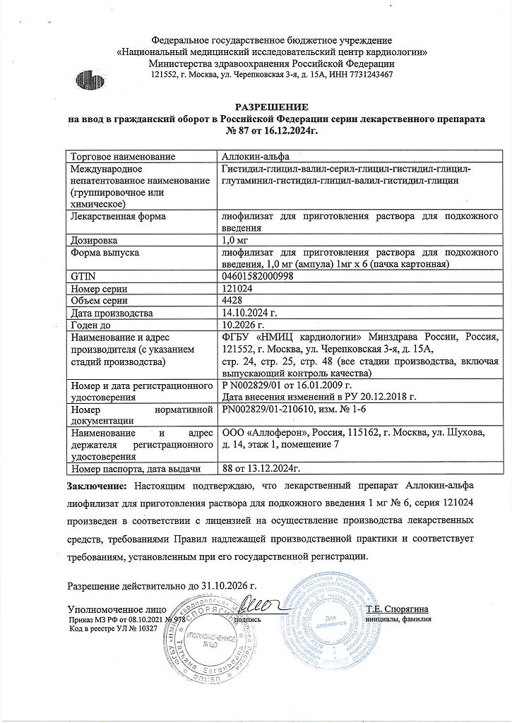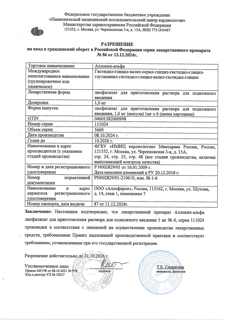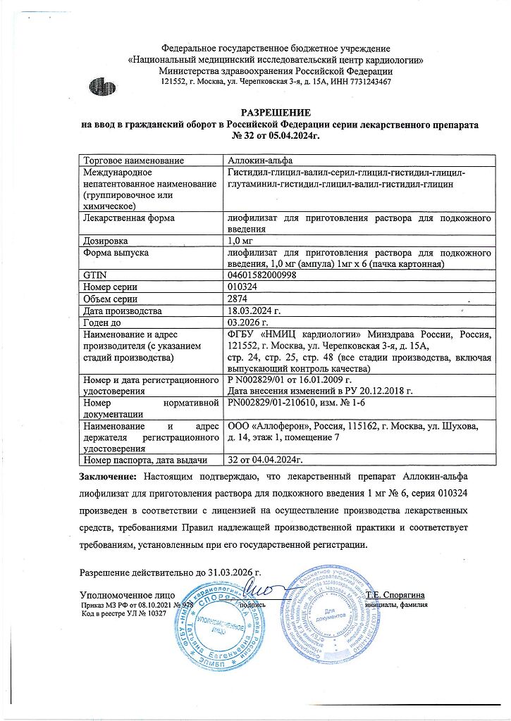 Производитель: ФГБУ РКНПК Минздрава России, Россия