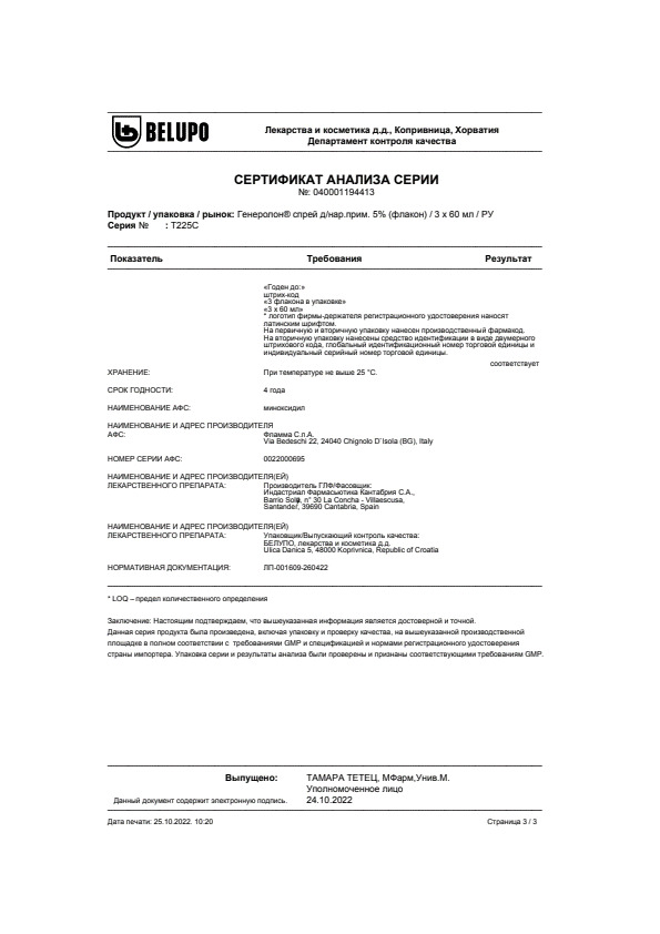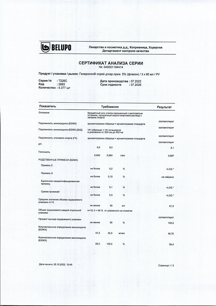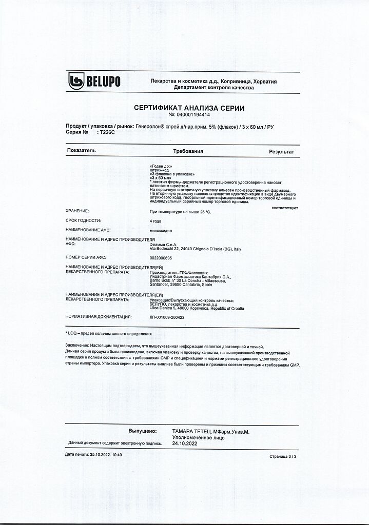 Перед началом лечения препаратом Генеролон® пациенты должны пройти общее обследование, включающее сбор и изучение медицинского анамнеза. Врач должен убедиться в том, что кожа волосистой части головы здорова.