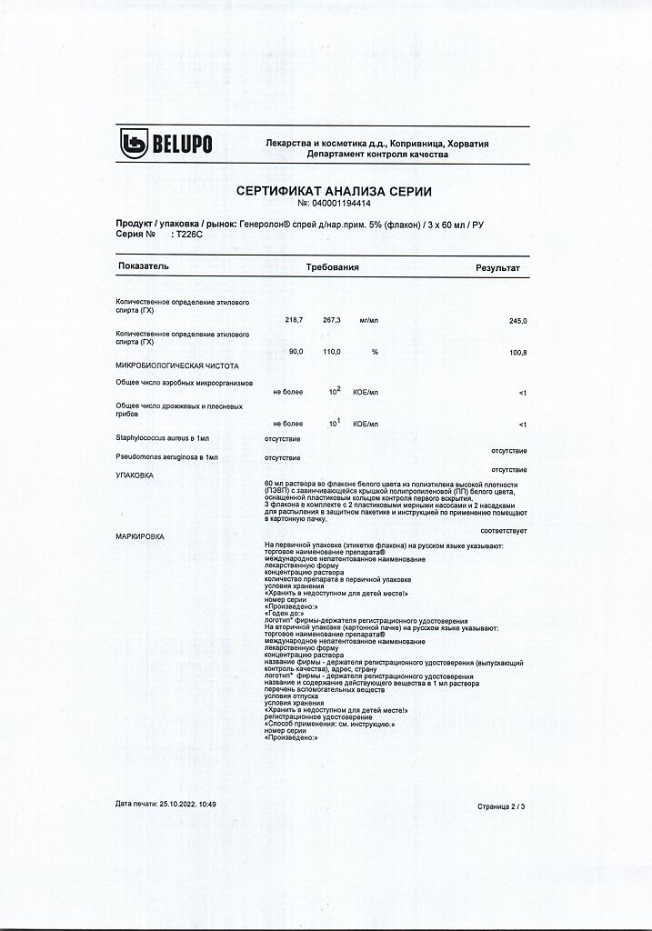 В состав препарата Генеролон® входит этиловый спирт, который может вызвать воспаление и раздражение глаз. В случае попадания препарата на чувствительные поверхности (глаза, раздраженная кожа, слизистые оболочки) необходимо промыть участок большим количеством холодной воды. Следует избегать вдыхания препарата при распылении. После применения препарата следует тщательно вымыть руки.