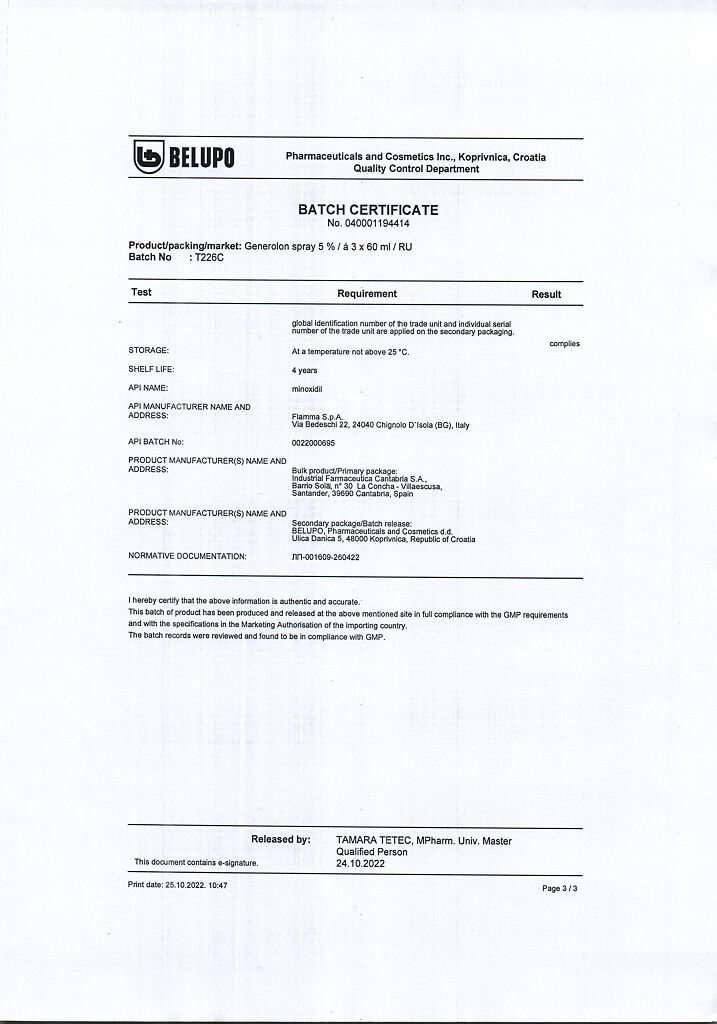 Профиль метаболической биотрансформации миноксидила после наружного применения препарата Генеролон® до настоящего времени полностью не изучен.