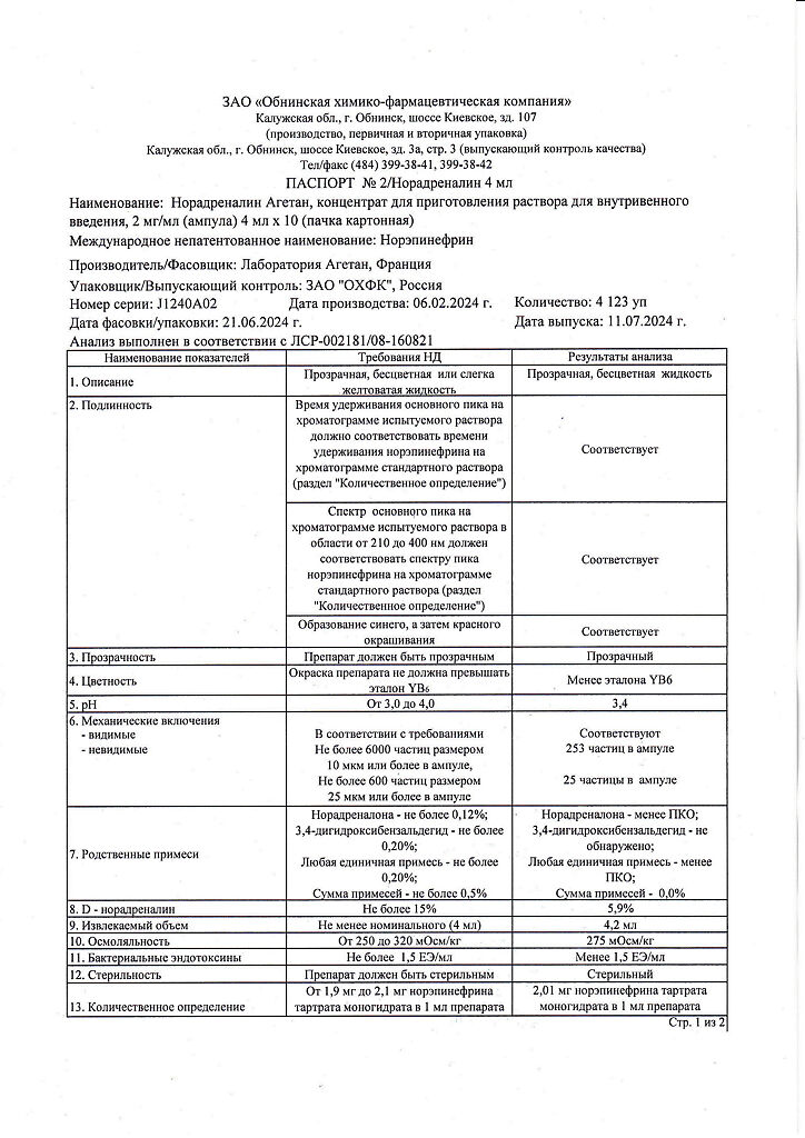 • 📲 Цена на Норадреналин Агетан ниже в нашем приложении