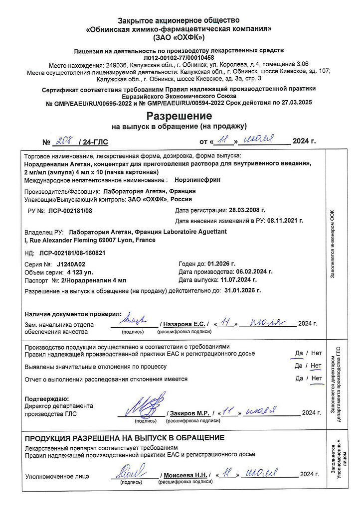 • Информацию об акциях и скидках на Норадреналин Агетан уточняйте на нашем сайте.
