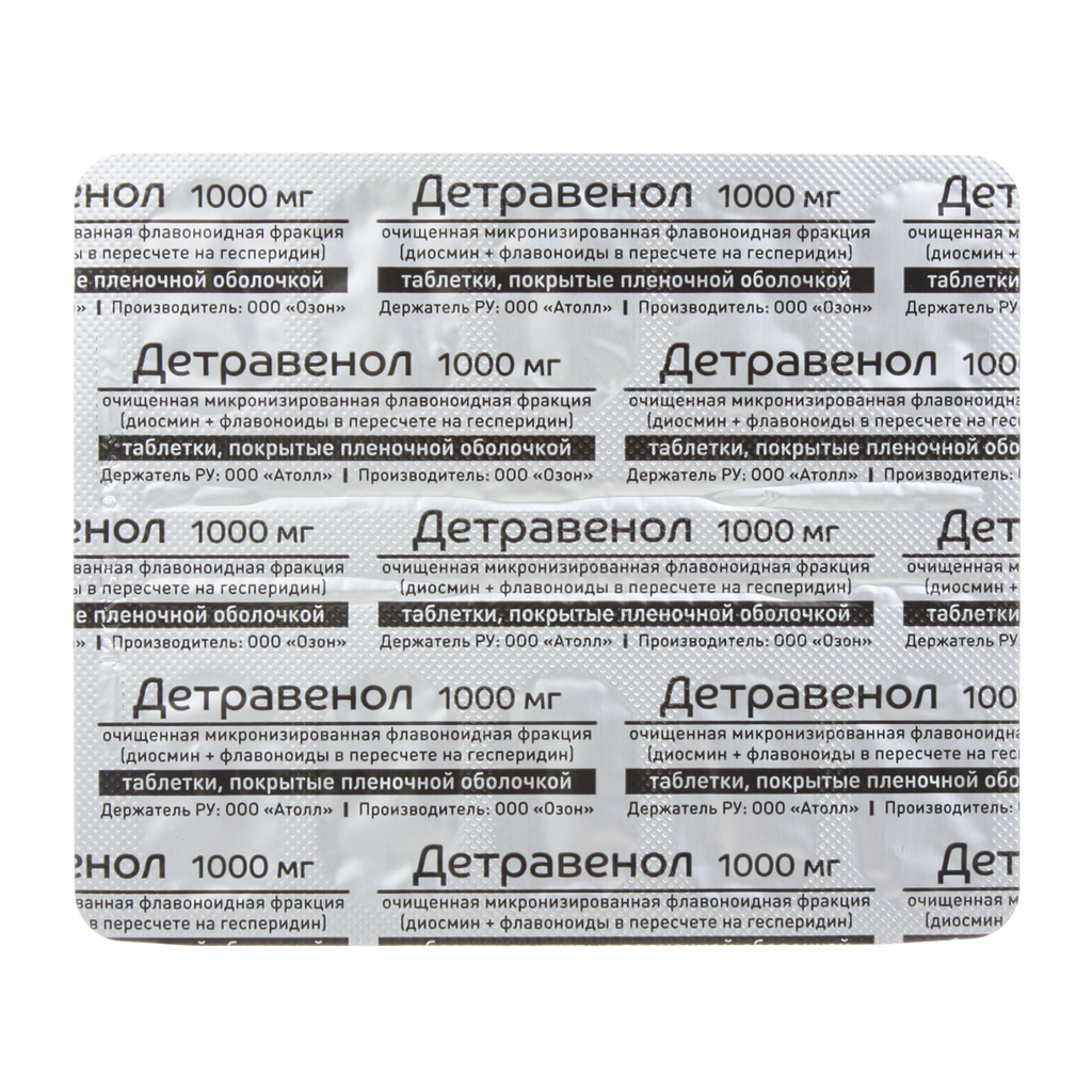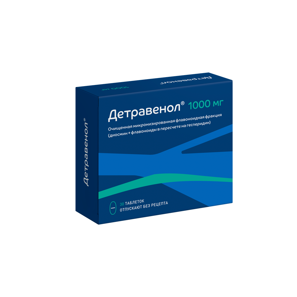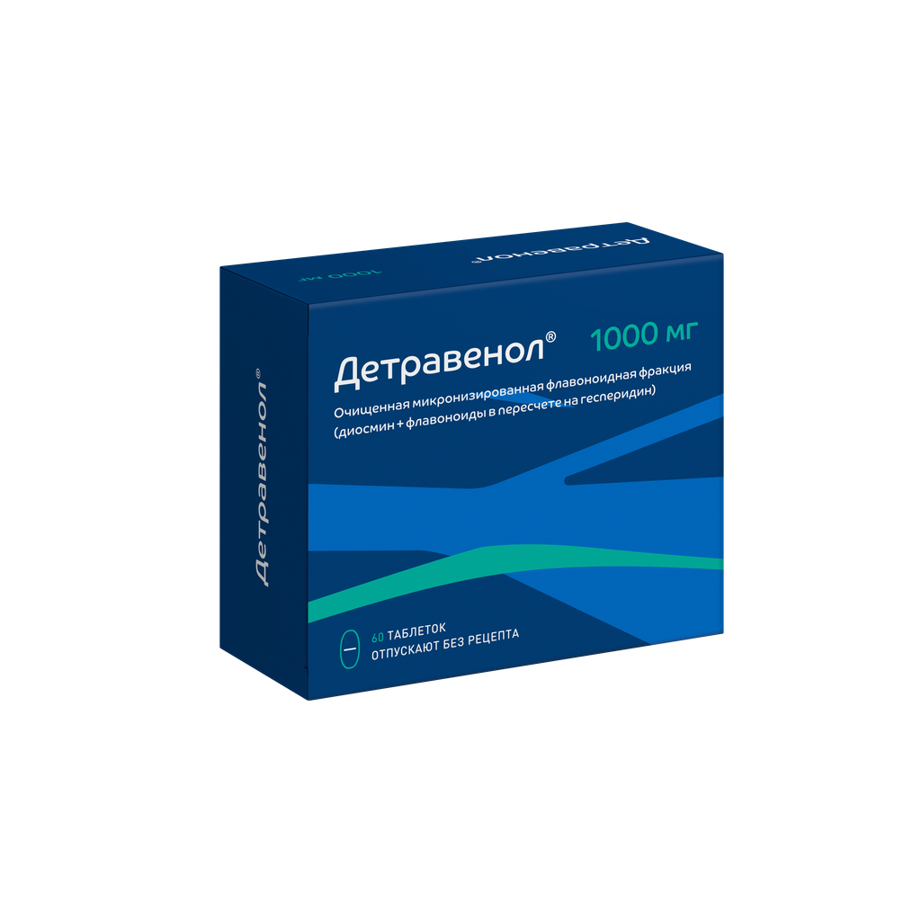 Препарат Детравенол преимущественно выводится через кишечник. Почками, в среднем, выводится около 14 % принятой дозы препарата.