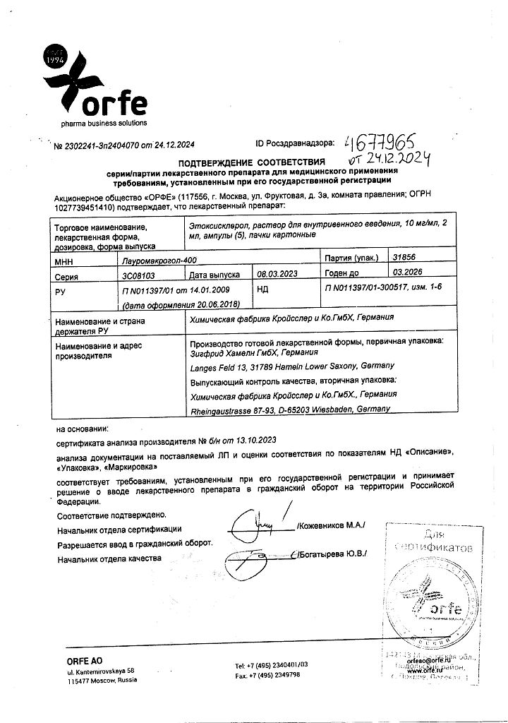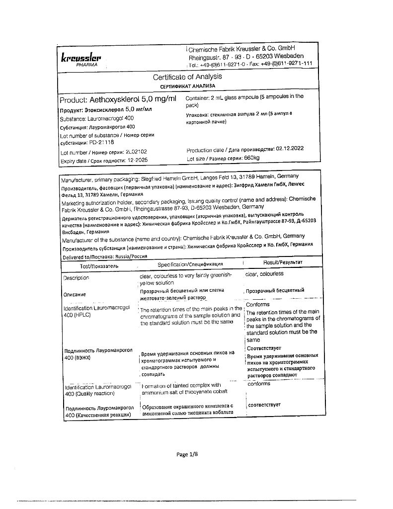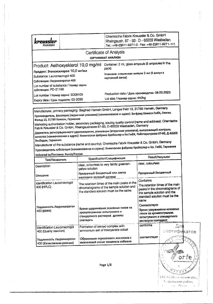 Производитель: Зигфрид Хамельн ГмбХ, Германия