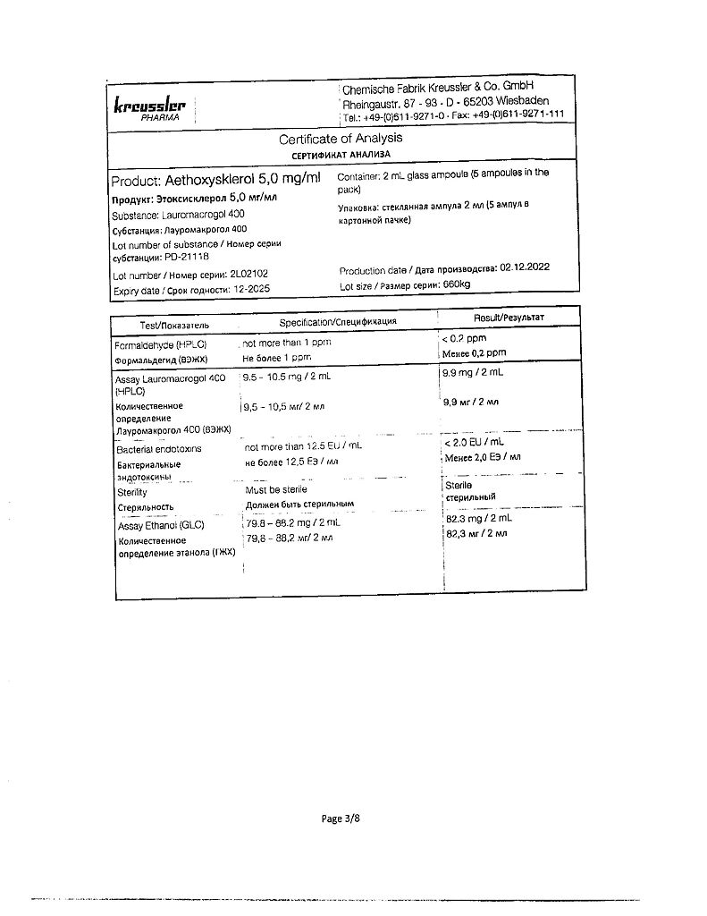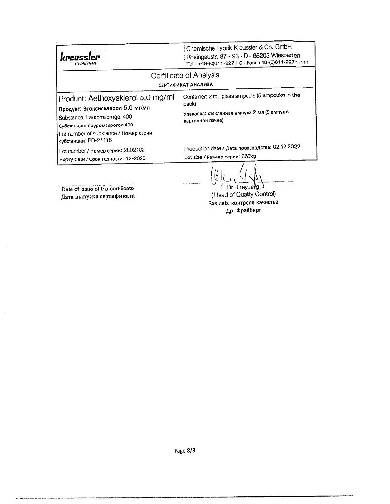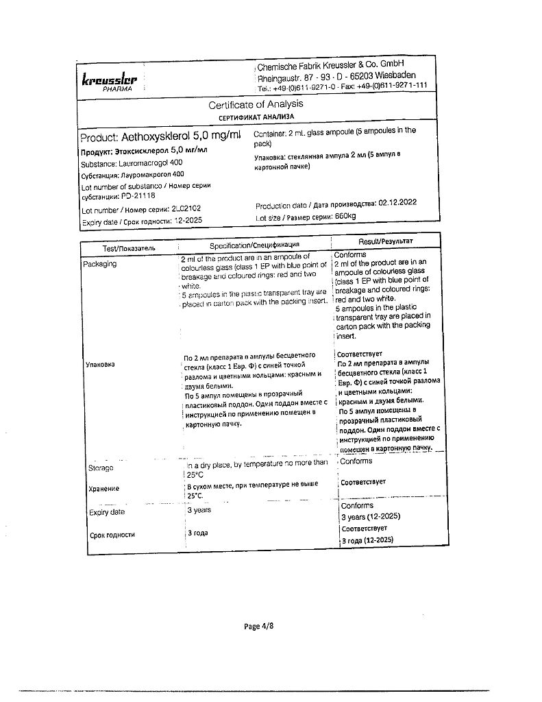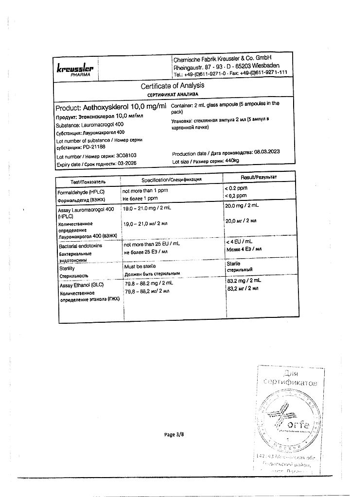 Общая доза полидоканола при склерозировании варикозных расширений вен и геморроидальных узлов не должна превышать 2 мг/кг массы тела в сутки. Для больного с весом 70 кг можно, таким образом, вводить до 140 мг полидоканола (28 мл 0,5% раствора этоксисклерола, 14 мл 1% раствора этоксисклерола, 4,6 мл 3% раствора этоксисклерола).