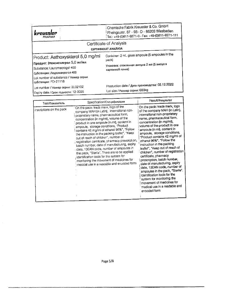 Активное вещество :полидоканола 5, 10 и 20 мг;
