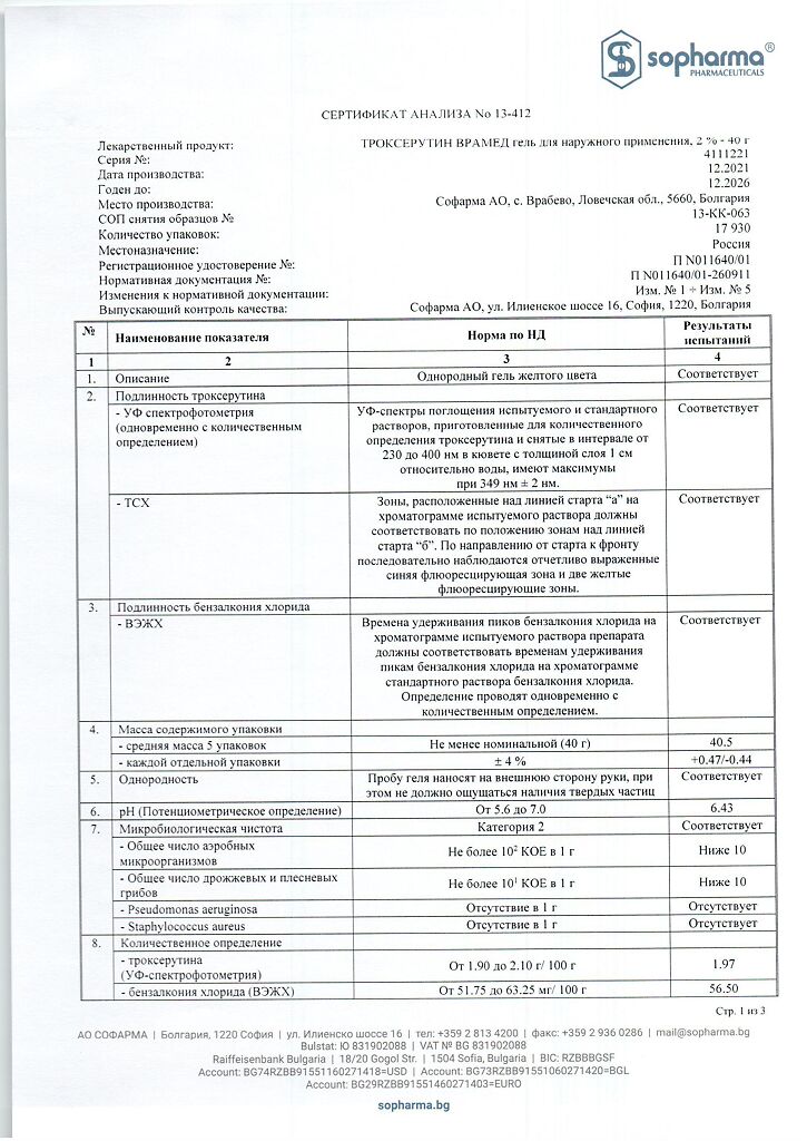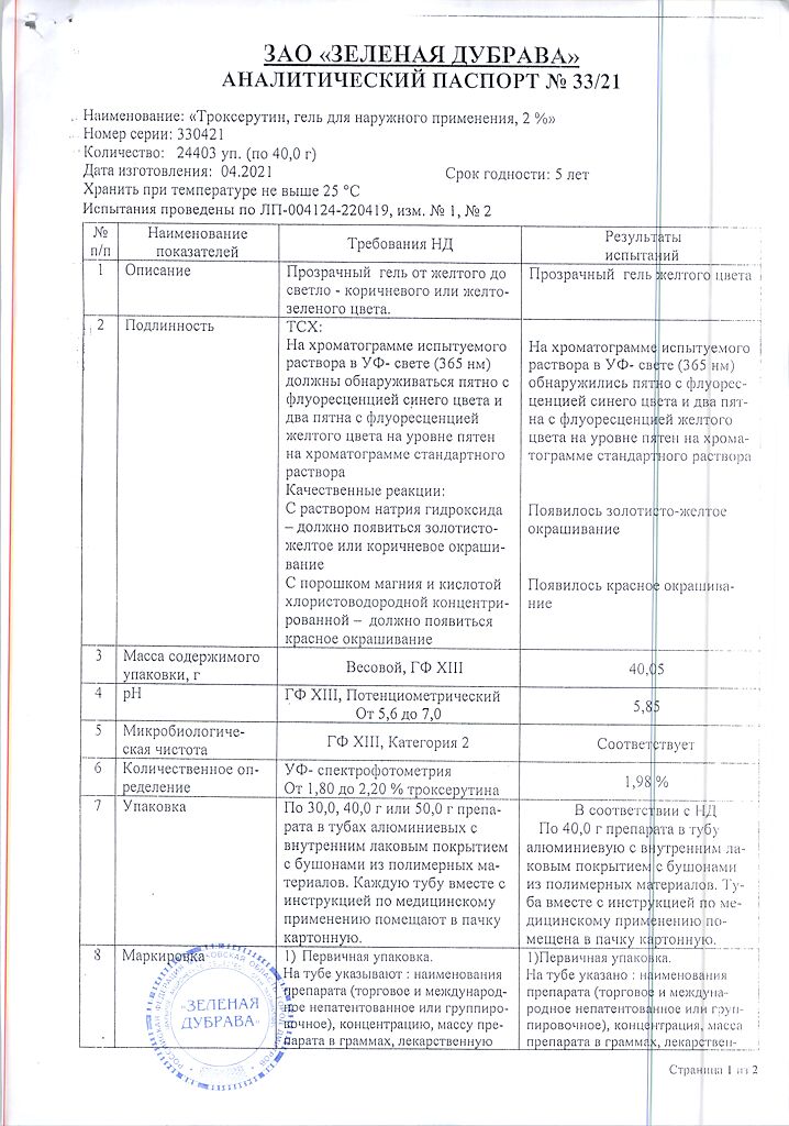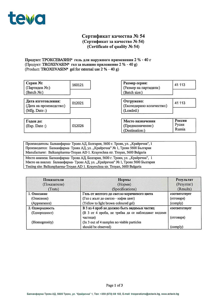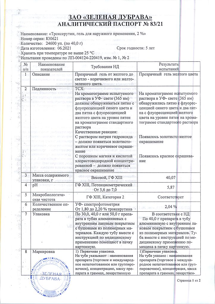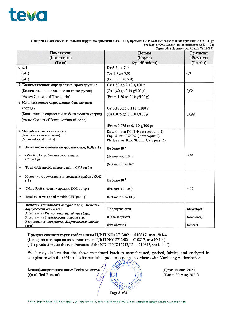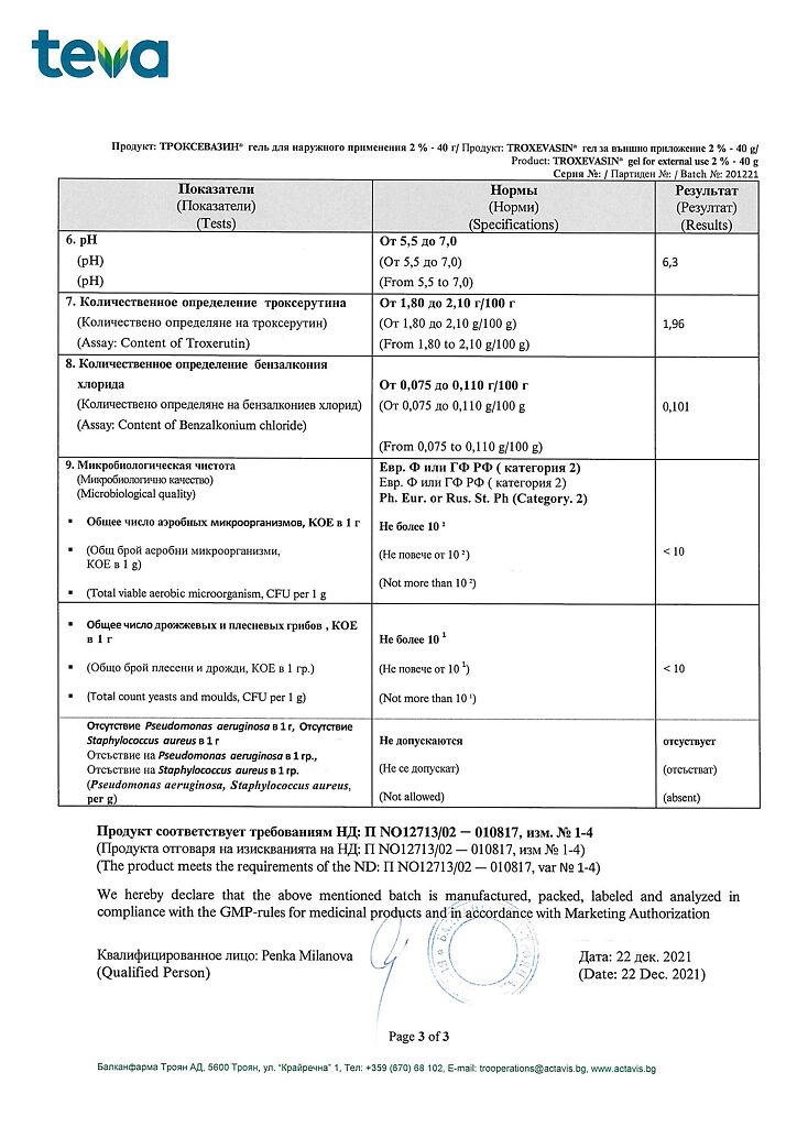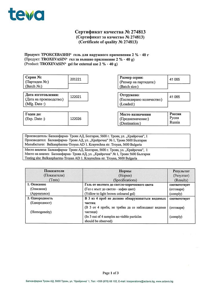 Троксерутин - венотонизирующее, ангиопротекторное средство, биофлавоноид. Уменьшает проницаемость и ломкость капилляров, укрепляет сосудистую стенку, улучшает микроциркуляцию, оказывает противоотечное действие. Участвует в окислительно- восстановительных процессах, блокирует гиалуроновую кислоту клеточных оболочек. Увеличивает плотность сосудистой стенки, уменьшает экссудацию жидкой части плазмы и диапедез клеток крови. Снижает воспаление в сосудистой стенке, ограничивая прилипание к ее поверхности тромбоцитов.