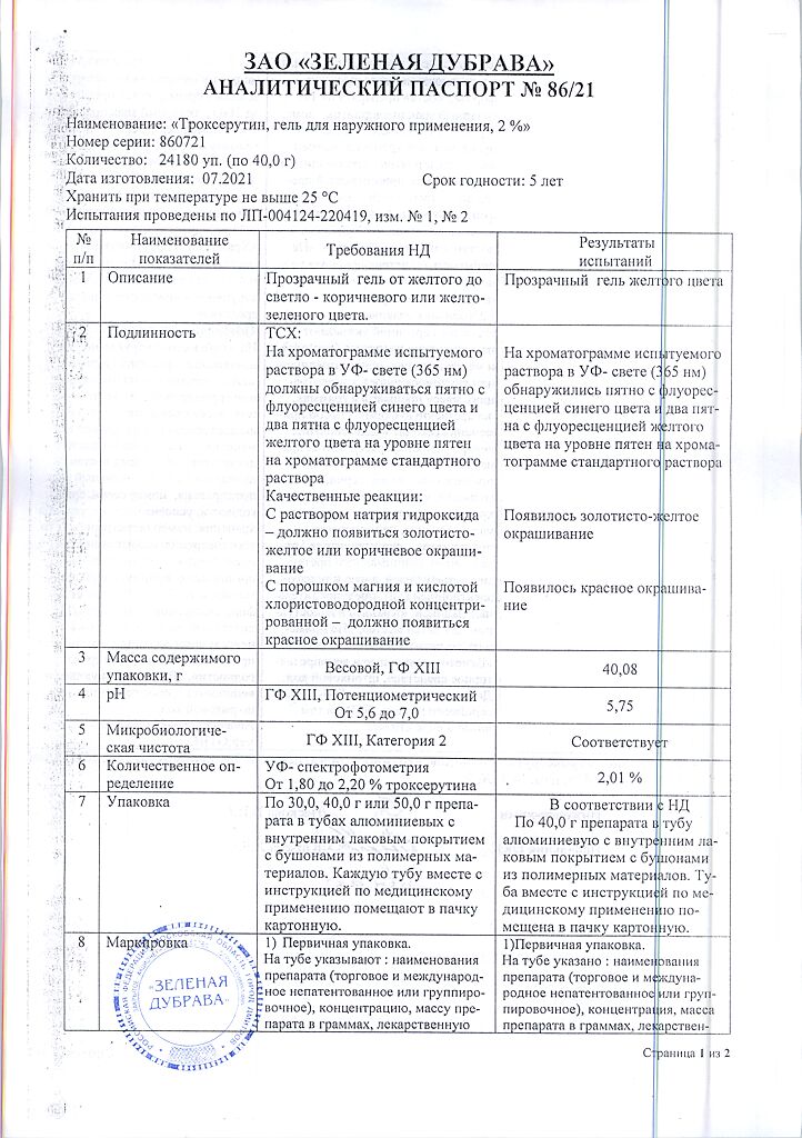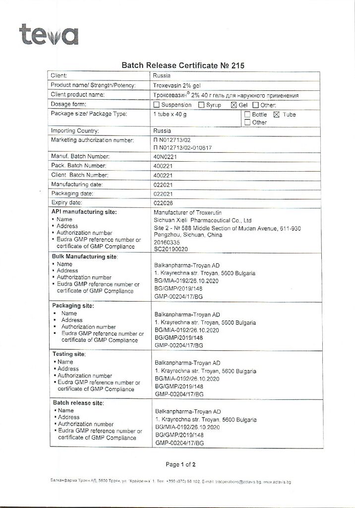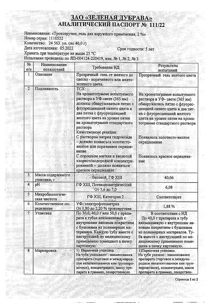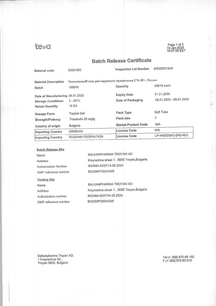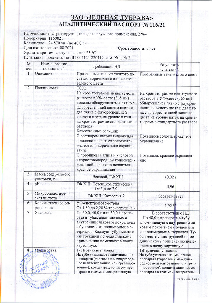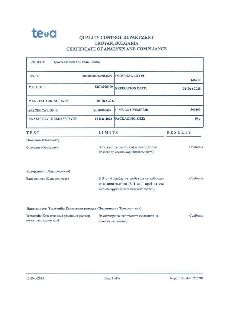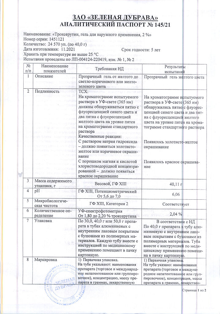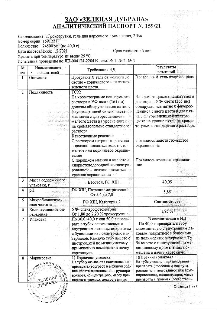 Троксерутин - венотонизирующее, ангиопротекторное средство, биофлавоноид. Уменьшает проницаемость и ломкость капилляров, укрепляет сосудистую стенку, улучшает микроциркуляцию, оказывает противоотечное действие. Участвует в окислительно- восстановительных процессах, блокирует гиалуроновую кислоту клеточных оболочек. Увеличивает плотность сосудистой стенки, уменьшает экссудацию жидкой части плазмы и диапедез клеток крови. Снижает воспаление в сосудистой стенке, ограничивая прилипание к ее поверхности тромбоцитов.
