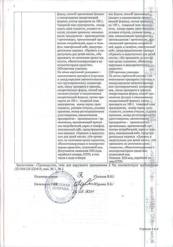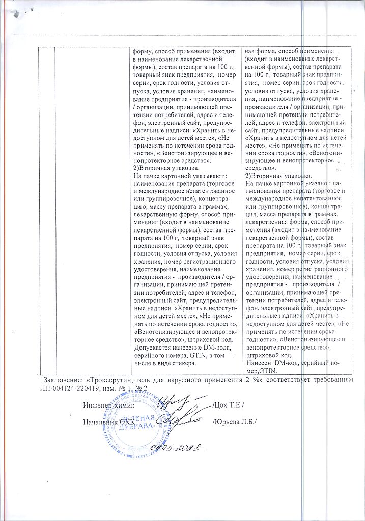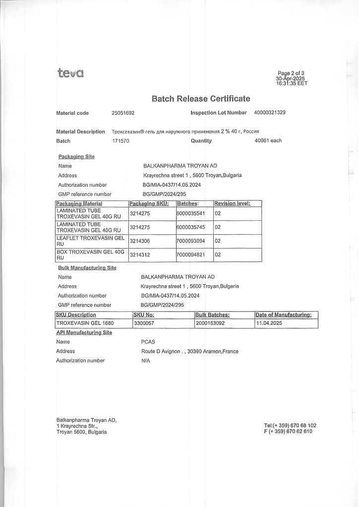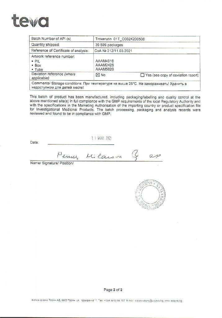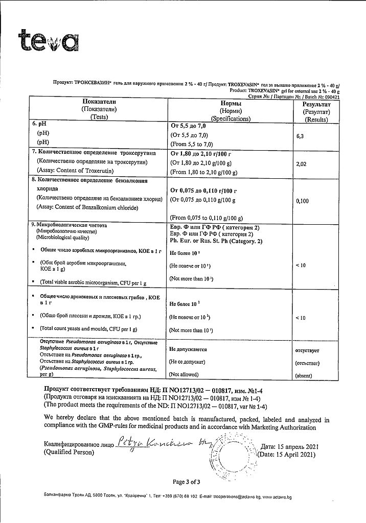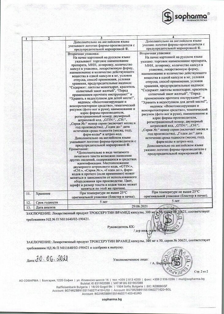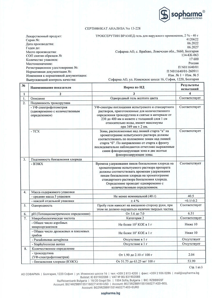 Троксерутин - венотонизирующее, ангиопротекторное средство, биофлавоноид. Уменьшает проницаемость и ломкость капилляров, укрепляет сосудистую стенку, улучшает микроциркуляцию, оказывает противоотечное действие. Участвует в окислительно- восстановительных процессах, блокирует гиалуроновую кислоту клеточных оболочек. Увеличивает плотность сосудистой стенки, уменьшает экссудацию жидкой части плазмы и диапедез клеток крови. Снижает воспаление в сосудистой стенке, ограничивая прилипание к ее поверхности тромбоцитов.