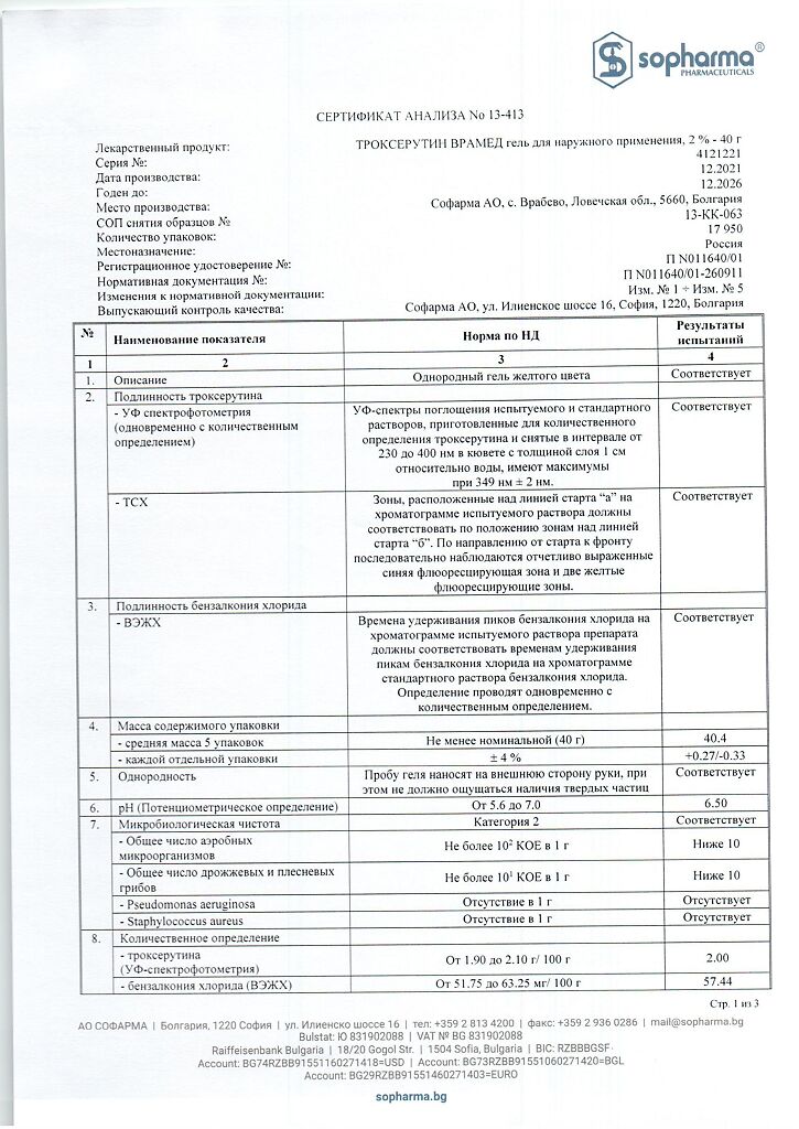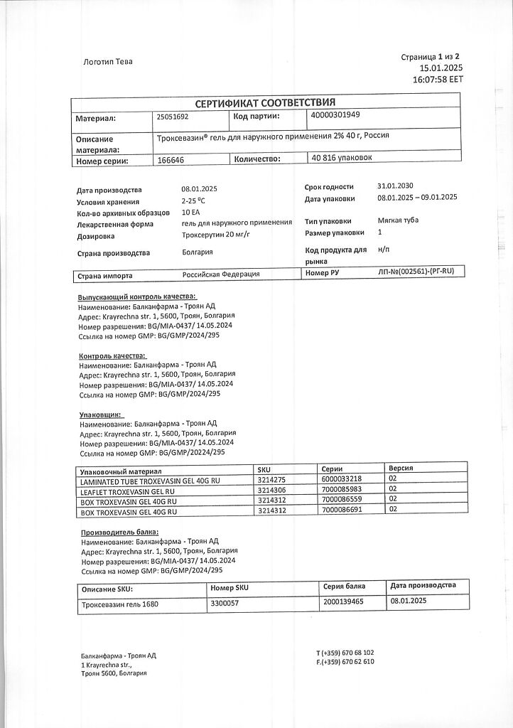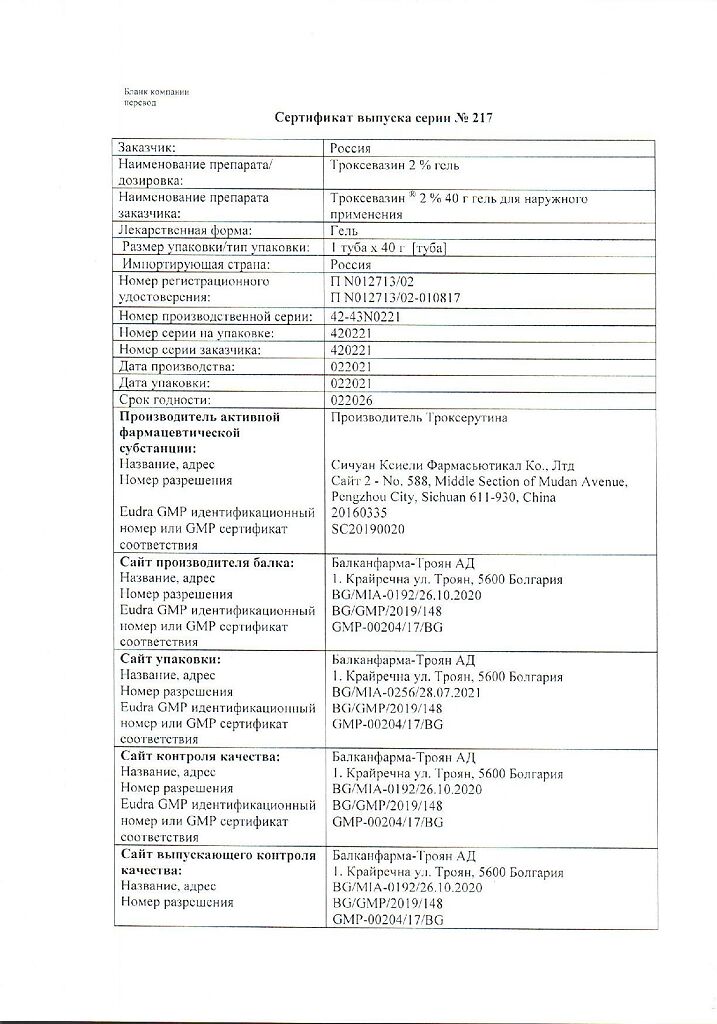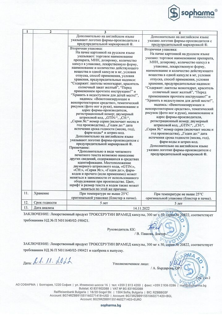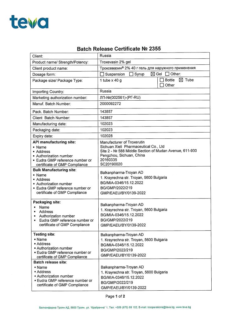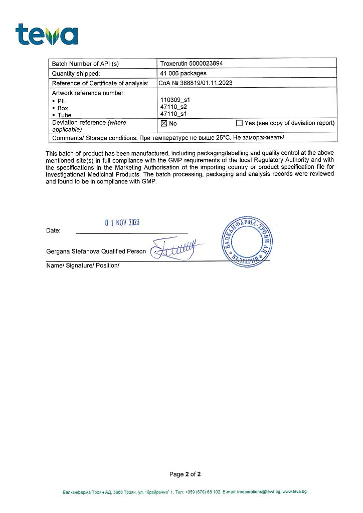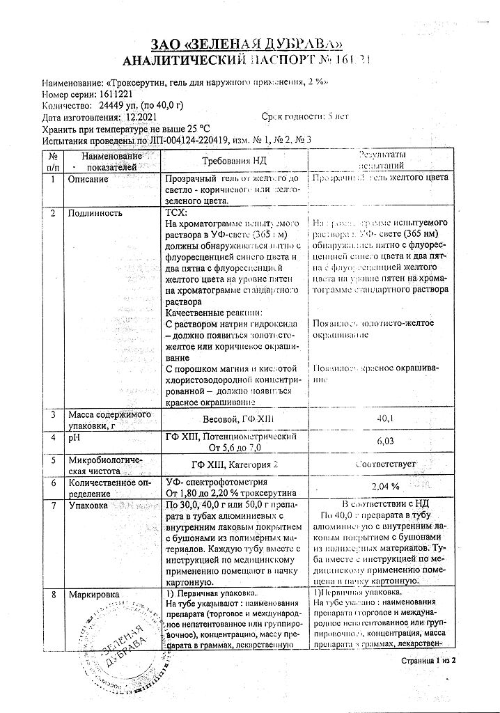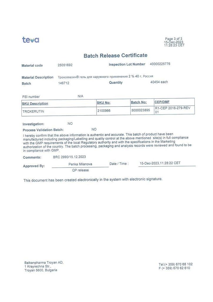 Троксерутин - венотонизирующее, ангиопротекторное средство, биофлавоноид. Уменьшает проницаемость и ломкость капилляров, укрепляет сосудистую стенку, улучшает микроциркуляцию, оказывает противоотечное действие. Участвует в окислительно- восстановительных процессах, блокирует гиалуроновую кислоту клеточных оболочек. Увеличивает плотность сосудистой стенки, уменьшает экссудацию жидкой части плазмы и диапедез клеток крови. Снижает воспаление в сосудистой стенке, ограничивая прилипание к ее поверхности тромбоцитов.