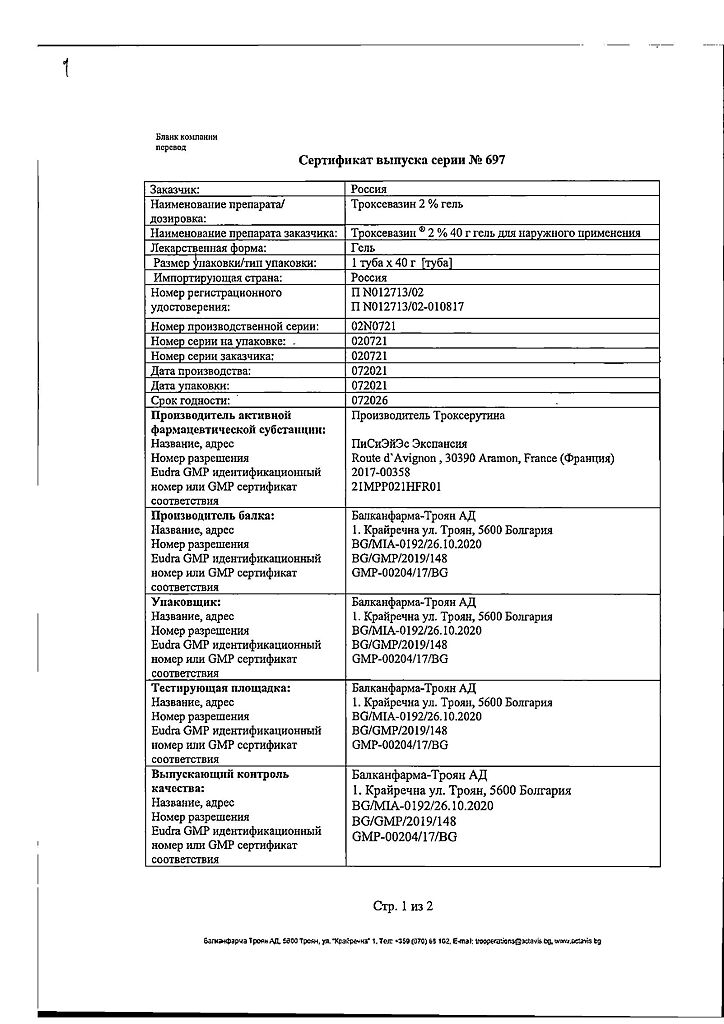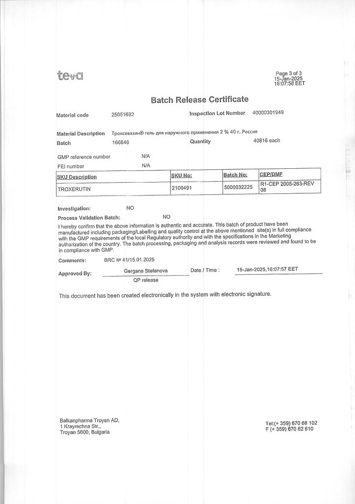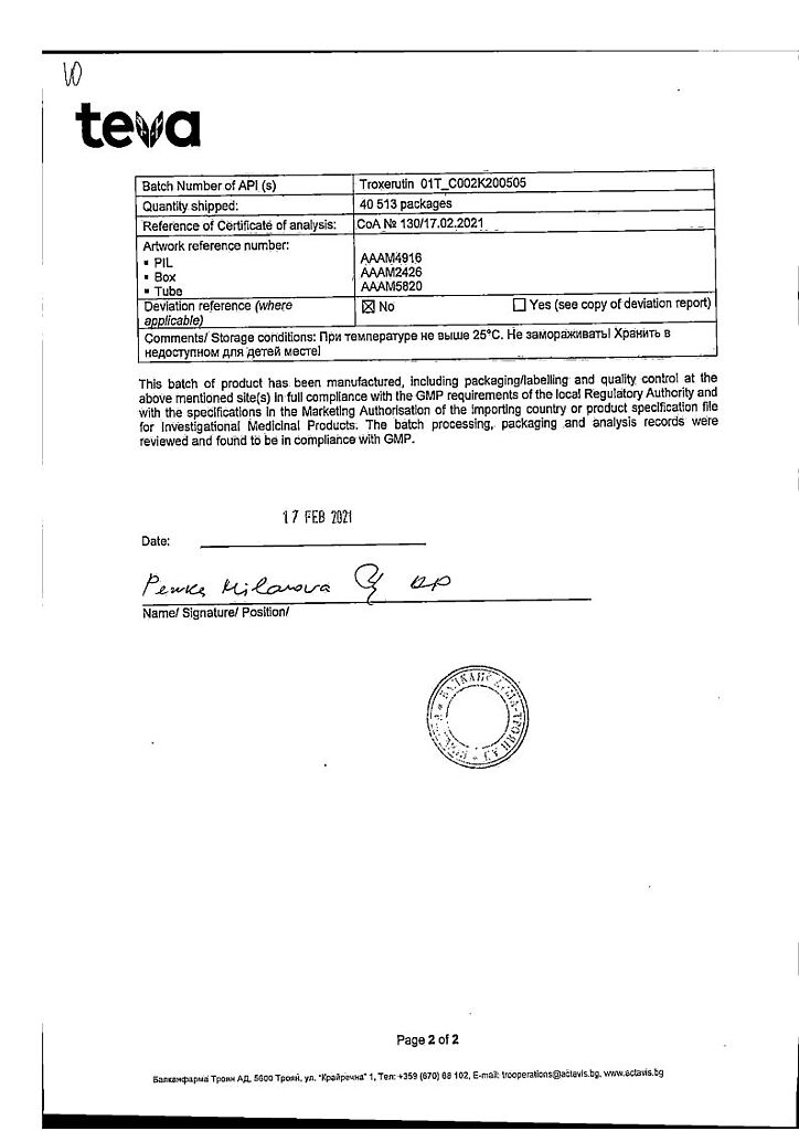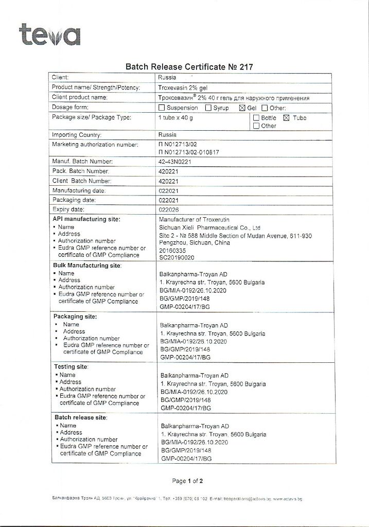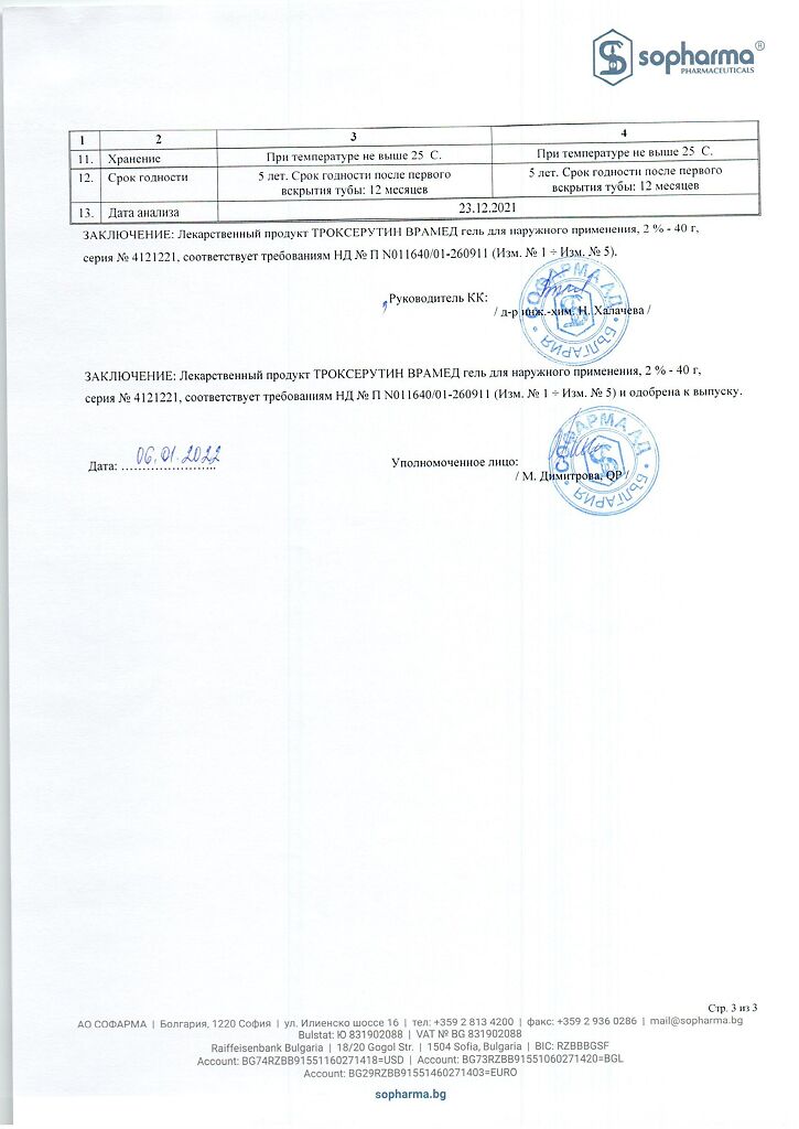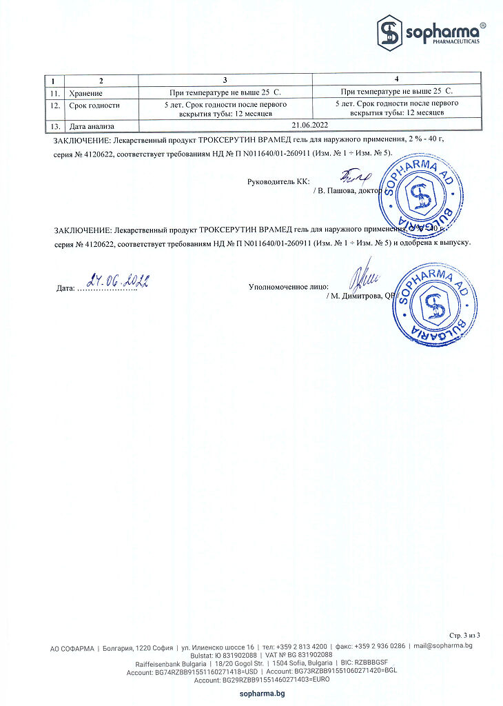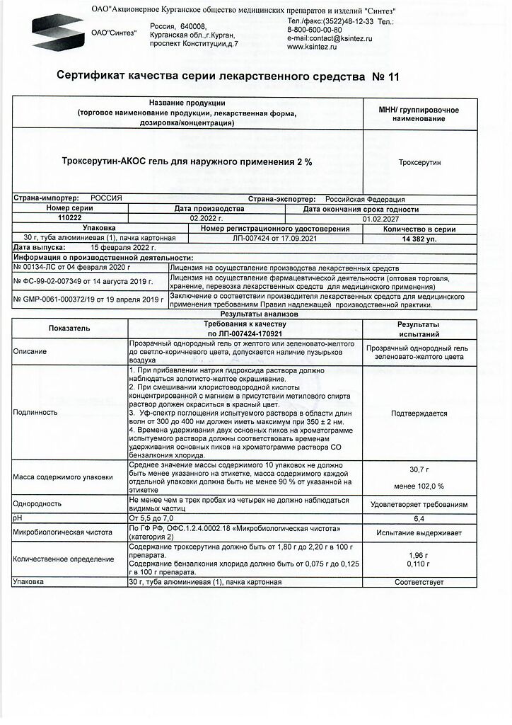 Троксерутин - венотонизирующее, ангиопротекторное средство, биофлавоноид. Уменьшает проницаемость и ломкость капилляров, укрепляет сосудистую стенку, улучшает микроциркуляцию, оказывает противоотечное действие. Участвует в окислительно- восстановительных процессах, блокирует гиалуроновую кислоту клеточных оболочек. Увеличивает плотность сосудистой стенки, уменьшает экссудацию жидкой части плазмы и диапедез клеток крови. Снижает воспаление в сосудистой стенке, ограничивая прилипание к ее поверхности тромбоцитов.