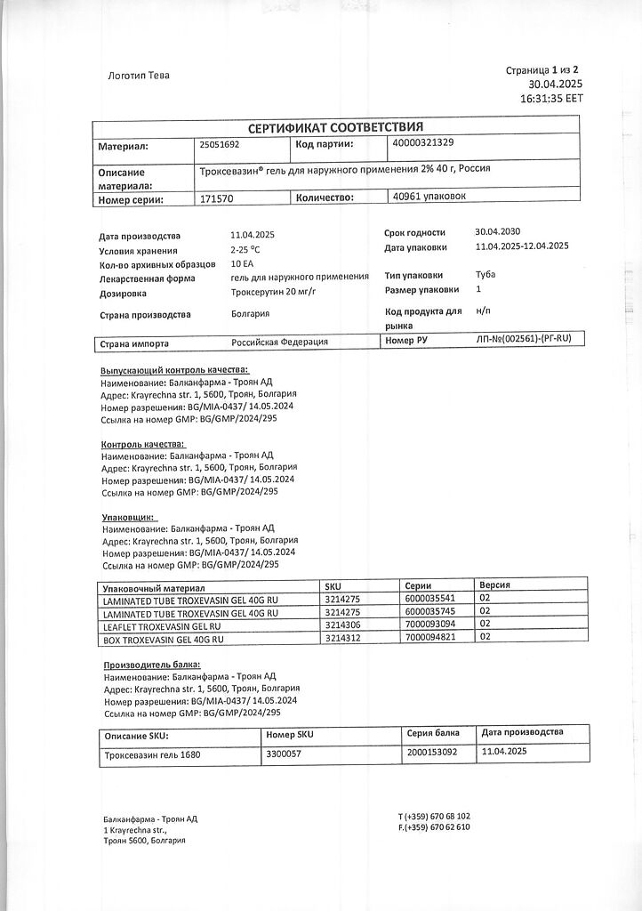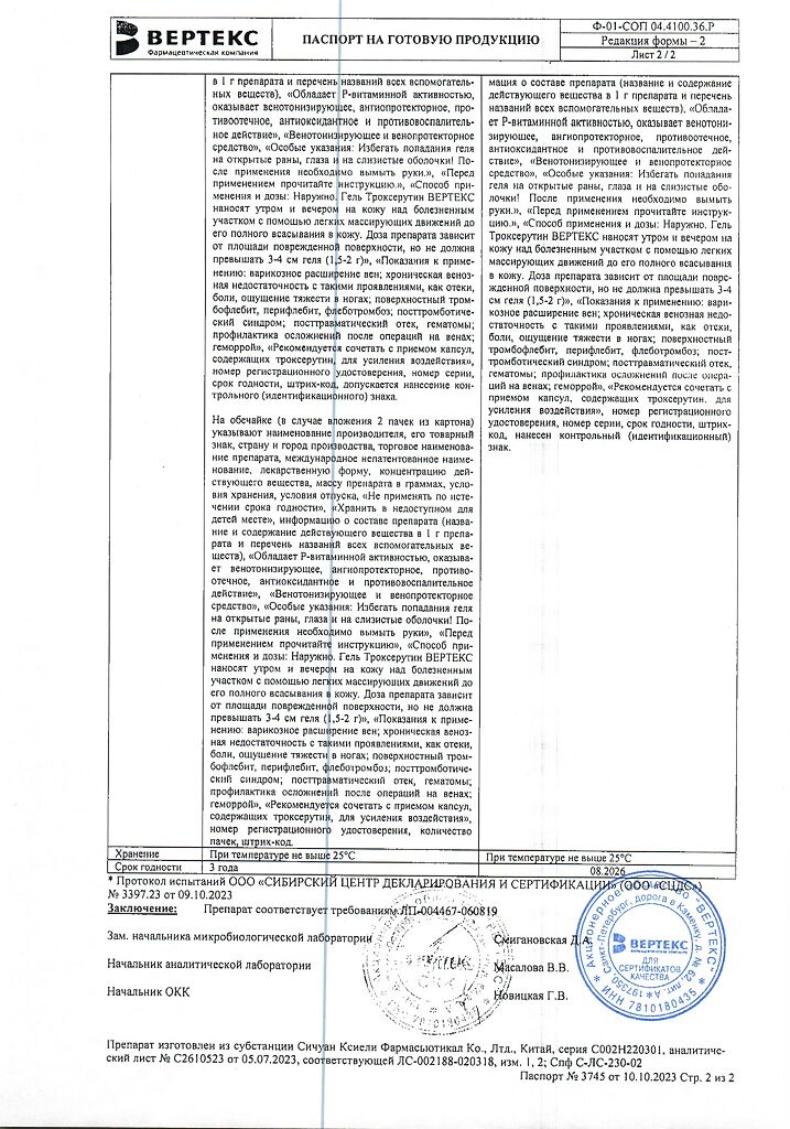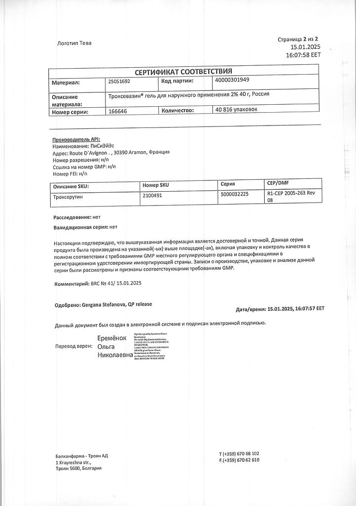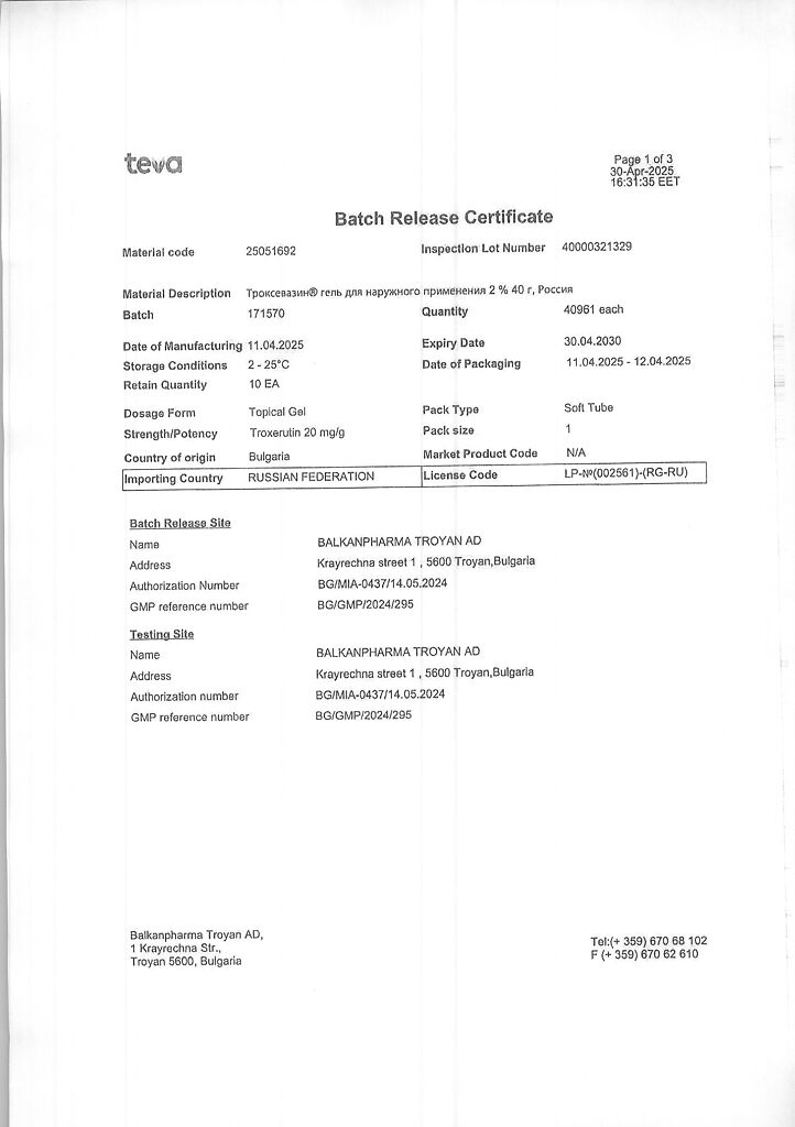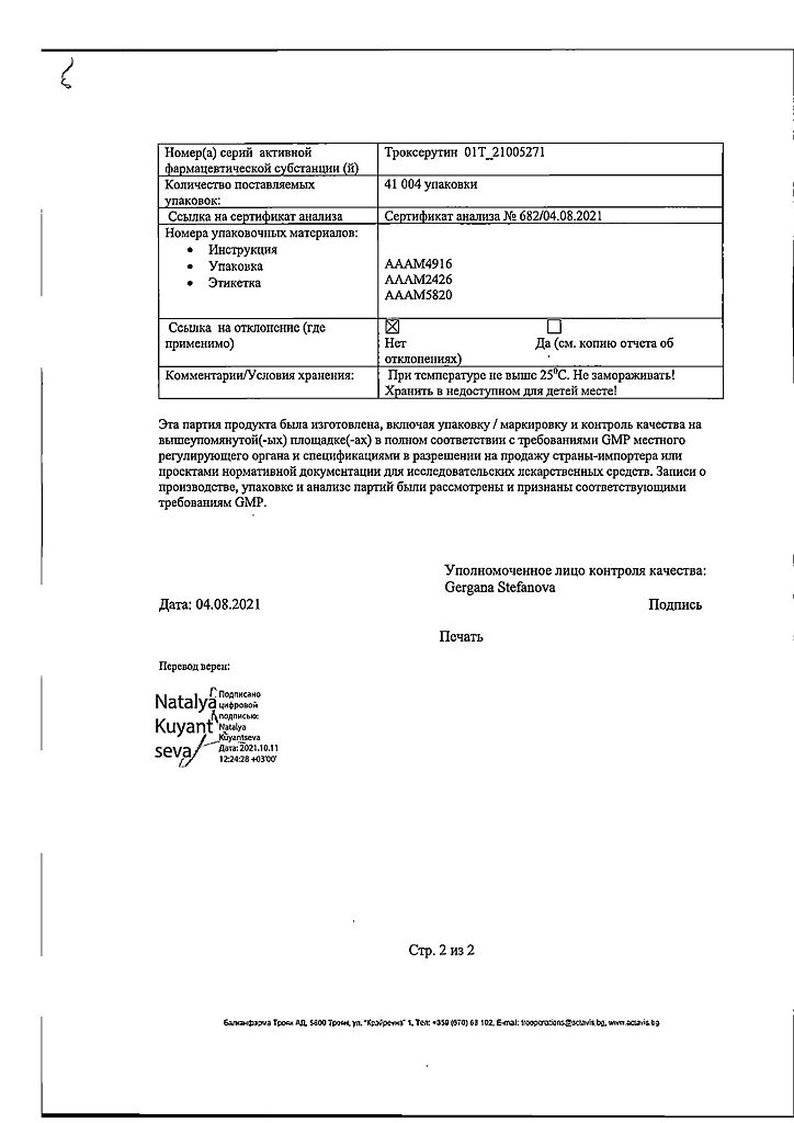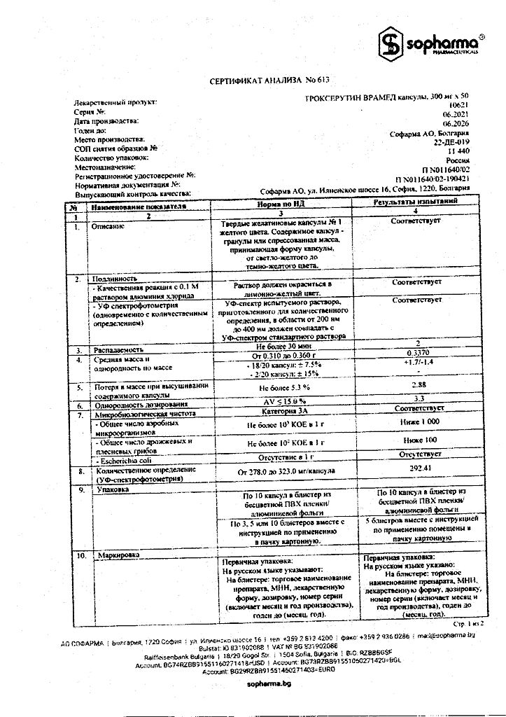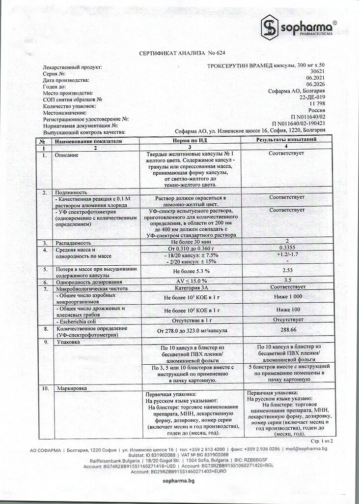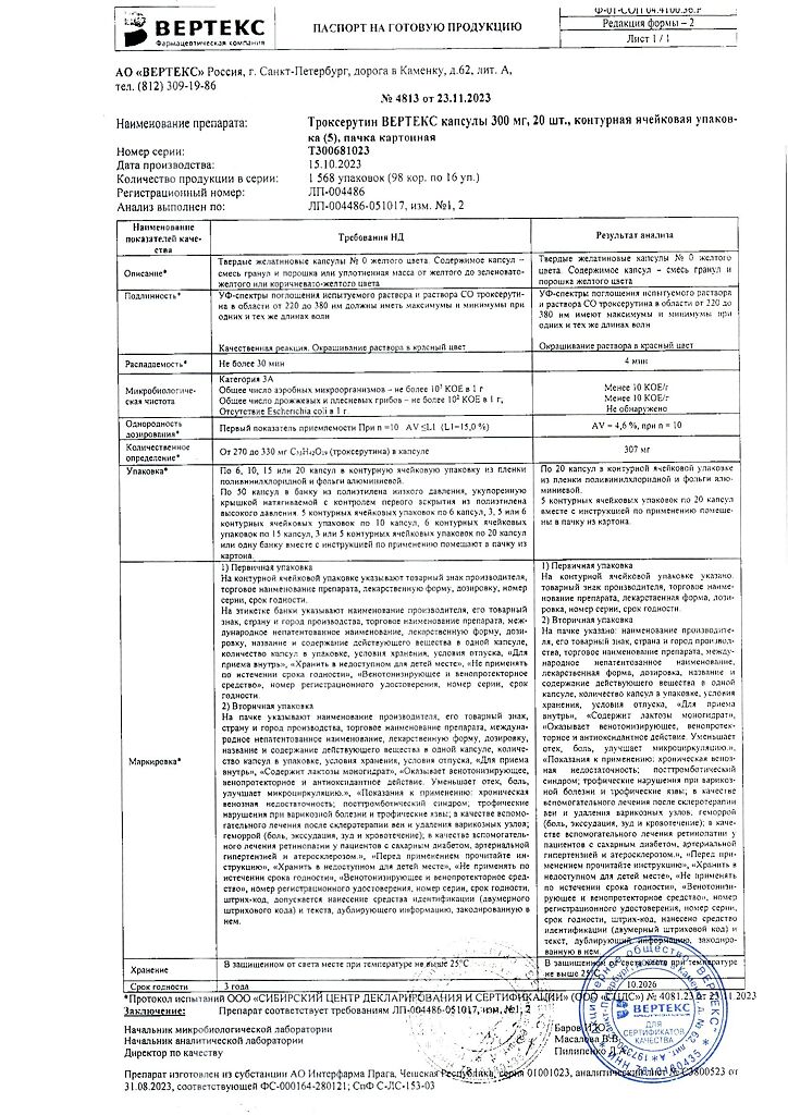 Троксерутин - венотонизирующее, ангиопротекторное средство, биофлавоноид. Уменьшает проницаемость и ломкость капилляров, укрепляет сосудистую стенку, улучшает микроциркуляцию, оказывает противоотечное действие. Участвует в окислительно- восстановительных процессах, блокирует гиалуроновую кислоту клеточных оболочек. Увеличивает плотность сосудистой стенки, уменьшает экссудацию жидкой части плазмы и диапедез клеток крови. Снижает воспаление в сосудистой стенке, ограничивая прилипание к ее поверхности тромбоцитов.