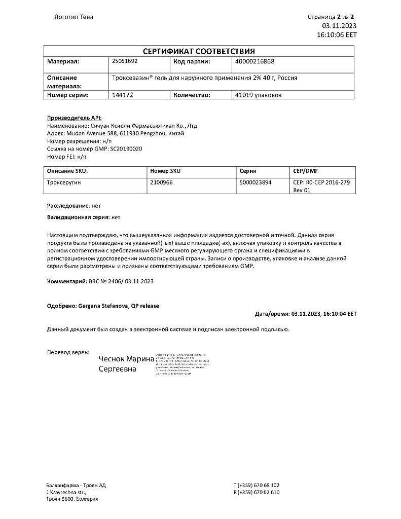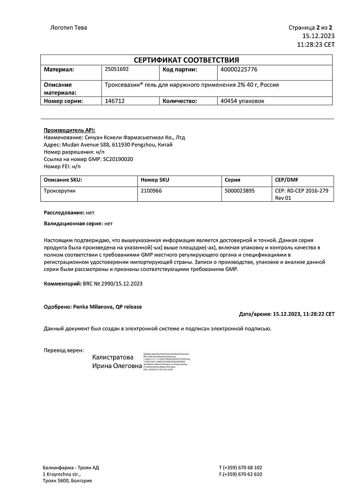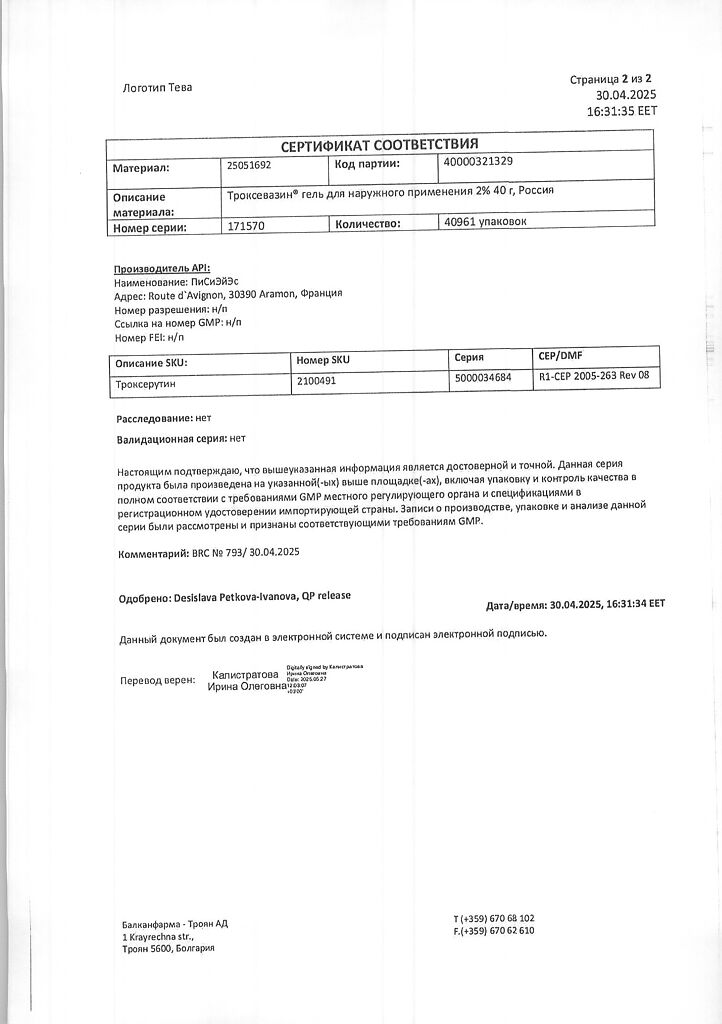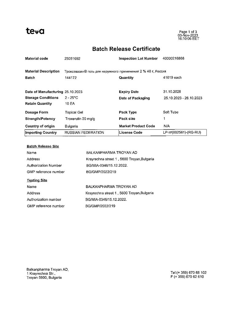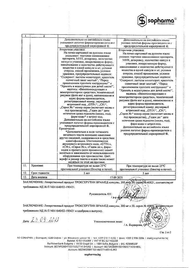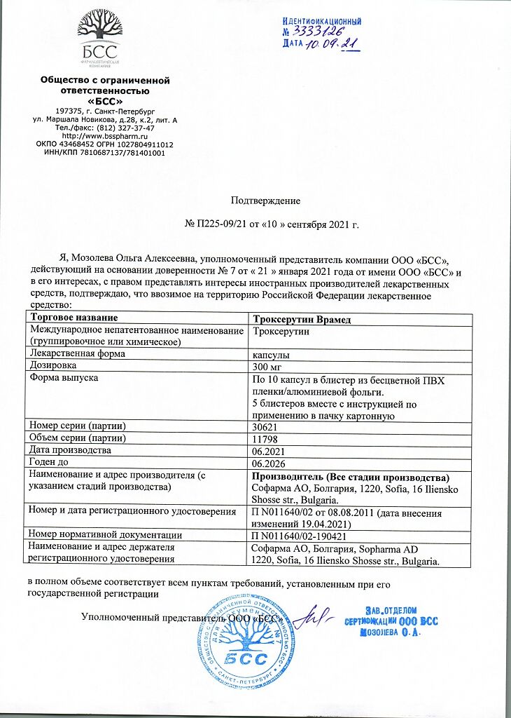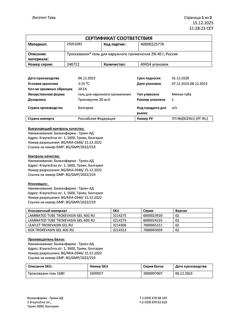 Троксерутин - венотонизирующее, ангиопротекторное средство, биофлавоноид. Уменьшает проницаемость и ломкость капилляров, укрепляет сосудистую стенку, улучшает микроциркуляцию, оказывает противоотечное действие. Участвует в окислительно- восстановительных процессах, блокирует гиалуроновую кислоту клеточных оболочек. Увеличивает плотность сосудистой стенки, уменьшает экссудацию жидкой части плазмы и диапедез клеток крови. Снижает воспаление в сосудистой стенке, ограничивая прилипание к ее поверхности тромбоцитов.