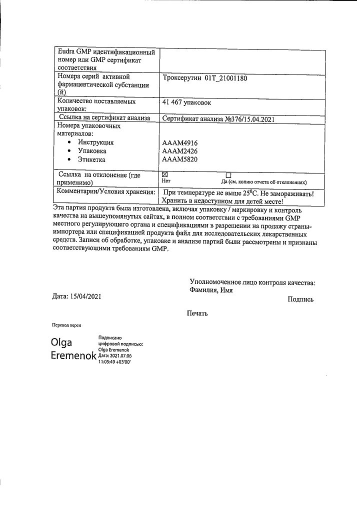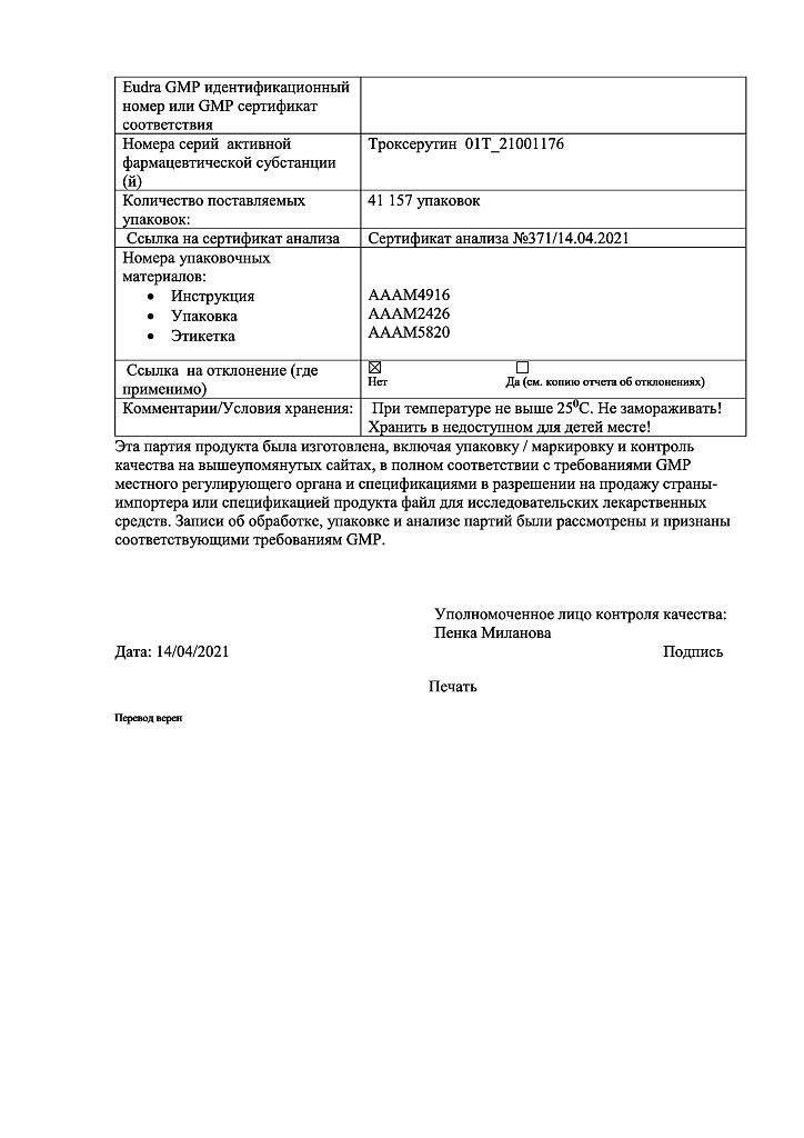 При лечении поверхностного тромбофлебита или тромбоза глубоких вен применение препарата Троксерутин Зентива не исключает необходимость назначения средств противовоспалительной и противотромботической терапии.