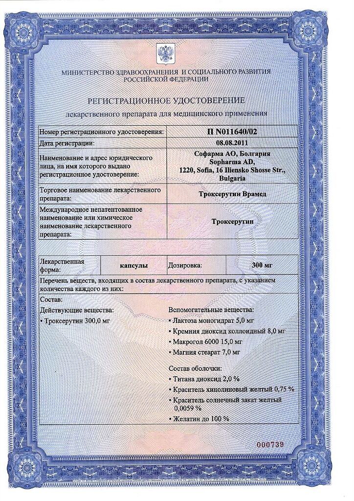 КапсулыТроксерутин следует проглатывать целиком, во время еды. Обычно назначают 1 капсулу внутрь 3 раза в сутки, в качестве поддерживающей терапии - 1 капсулу 2 раза в сутки. Курс лечения составляет в среднем 3-4 недели, необходимость более длительного лечения определяется индивидуально.